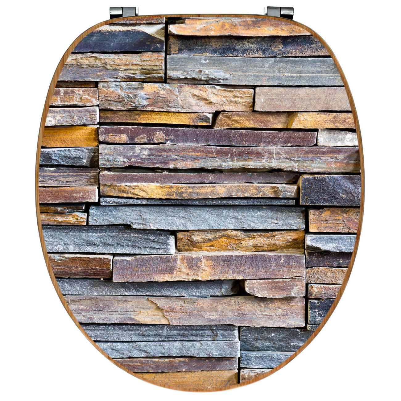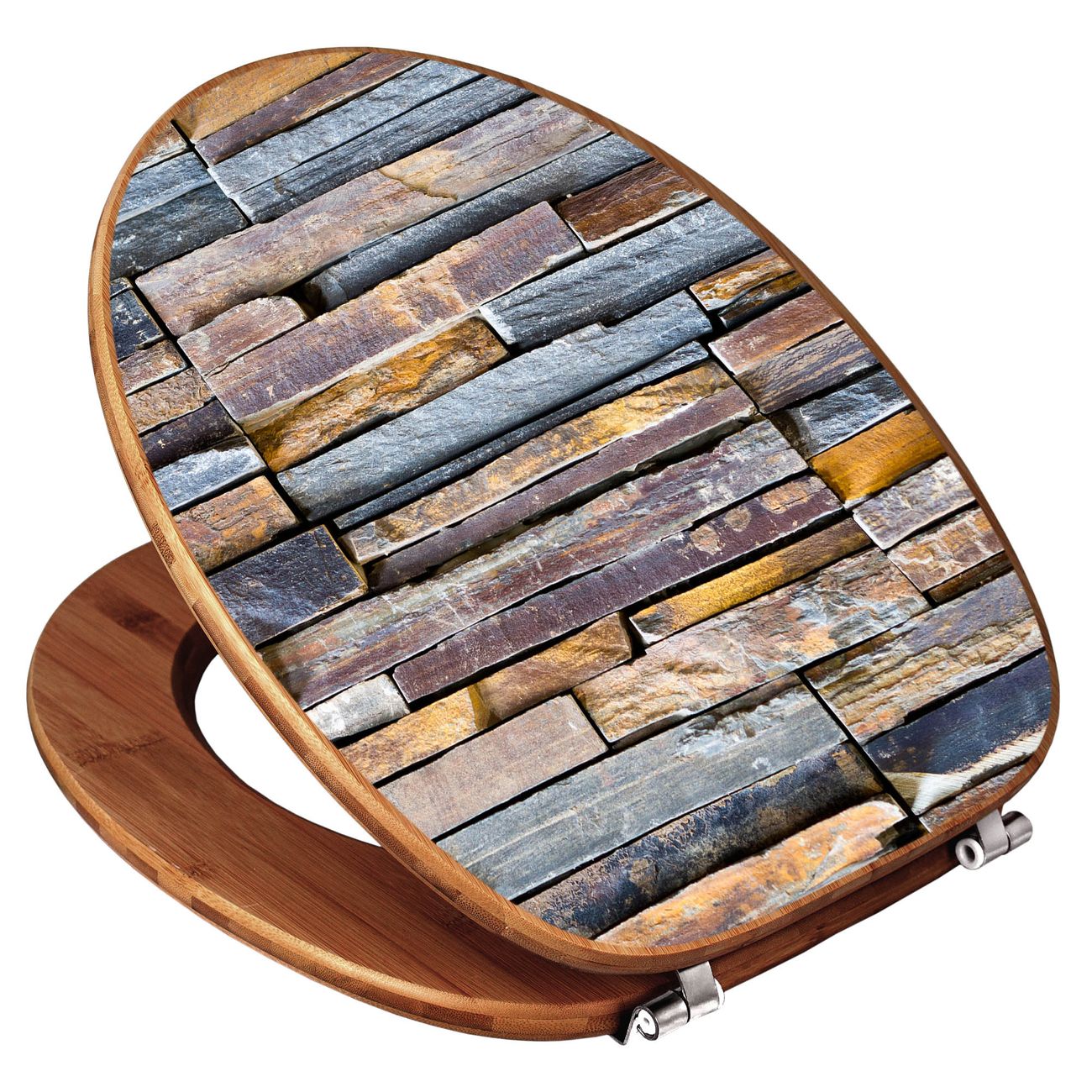 Mit dem banjado Toilettensitz in Bambus verbinden Sie Design und Funktionalität. Sie erhalten den WC-Sitz mit bewährt schwerer Holz Qualität und Universal Scharnieren. Das Motiv Motiv Naturstein besteht aus einer schutzlaminierten Motivfolie, die durch das Schutzlaminat zusätzlich vor Kratzern schützt. Durch diesen Motivdruck wird der WC-Sitz zu einem Blickfang in Ihrem Bad.