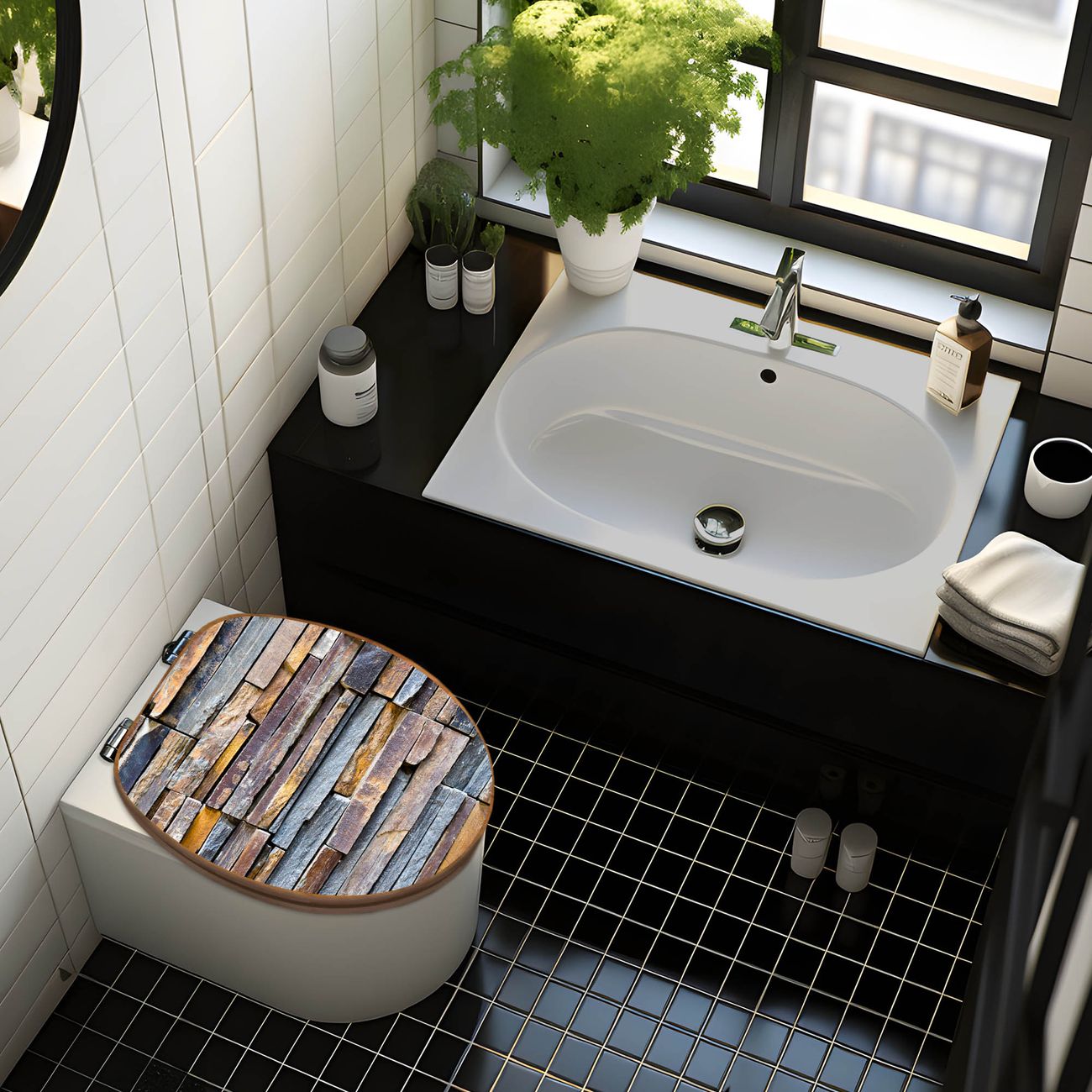 Design WC-Sitz Bambus Holz Motiv Naturstein
