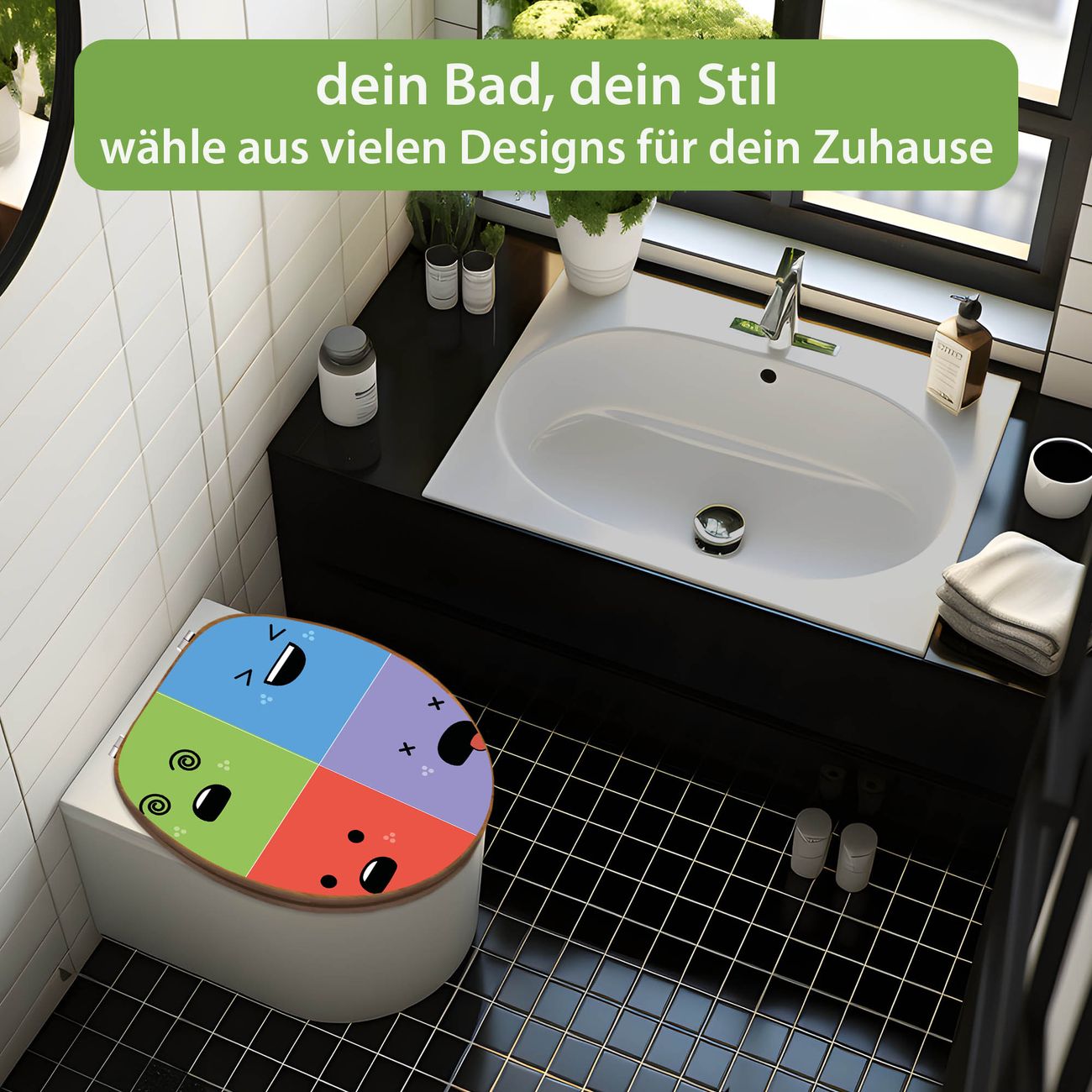 Mit dem banjado Toilettensitz in Bambus verbinden Sie Design und Funktionalität. Sie erhalten den WC-Sitz mit bewährt schwerer Holz Qualität und Universal Scharnieren. Das Motiv Motiv Neun Keinenasen besteht aus einer schutzlaminierten Motivfolie, die durch das Schutzlaminat zusätzlich vor Kratzern schützt. Durch diesen Motivdruck wird der WC-Sitz zu einem Blickfang in Ihrem Bad.
