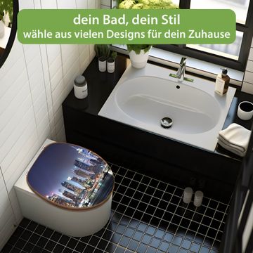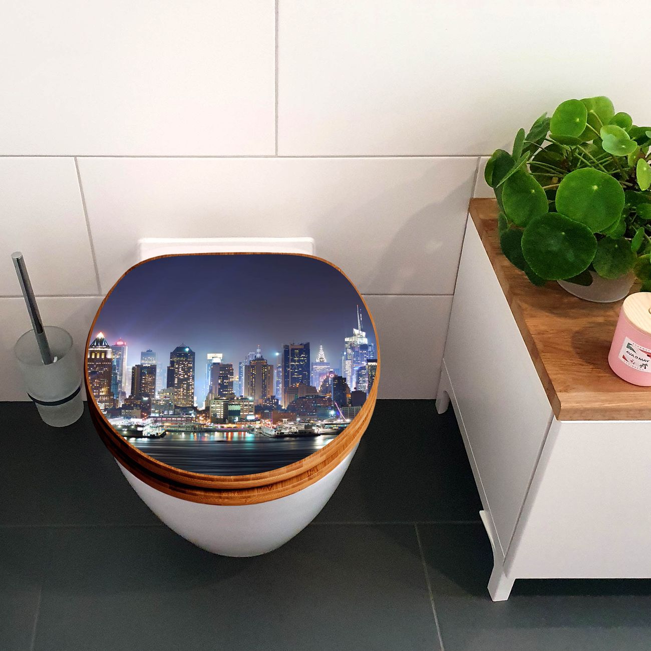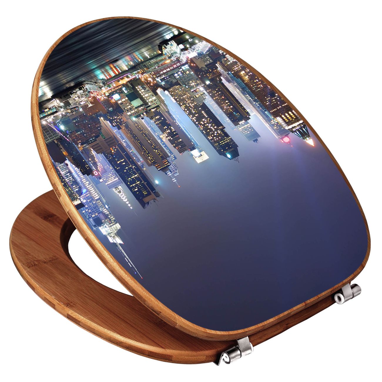 Mit dem banjado Toilettensitz in Bambus verbinden Sie Design und Funktionalität. Sie erhalten den WC-Sitz mit bewährt schwerer Holz Qualität und Universal Scharnieren. Das Motiv Motiv New York besteht aus einer schutzlaminierten Motivfolie, die durch das Schutzlaminat zusätzlich vor Kratzern schützt. Durch diesen Motivdruck wird der WC-Sitz zu einem Blickfang in Ihrem Bad.