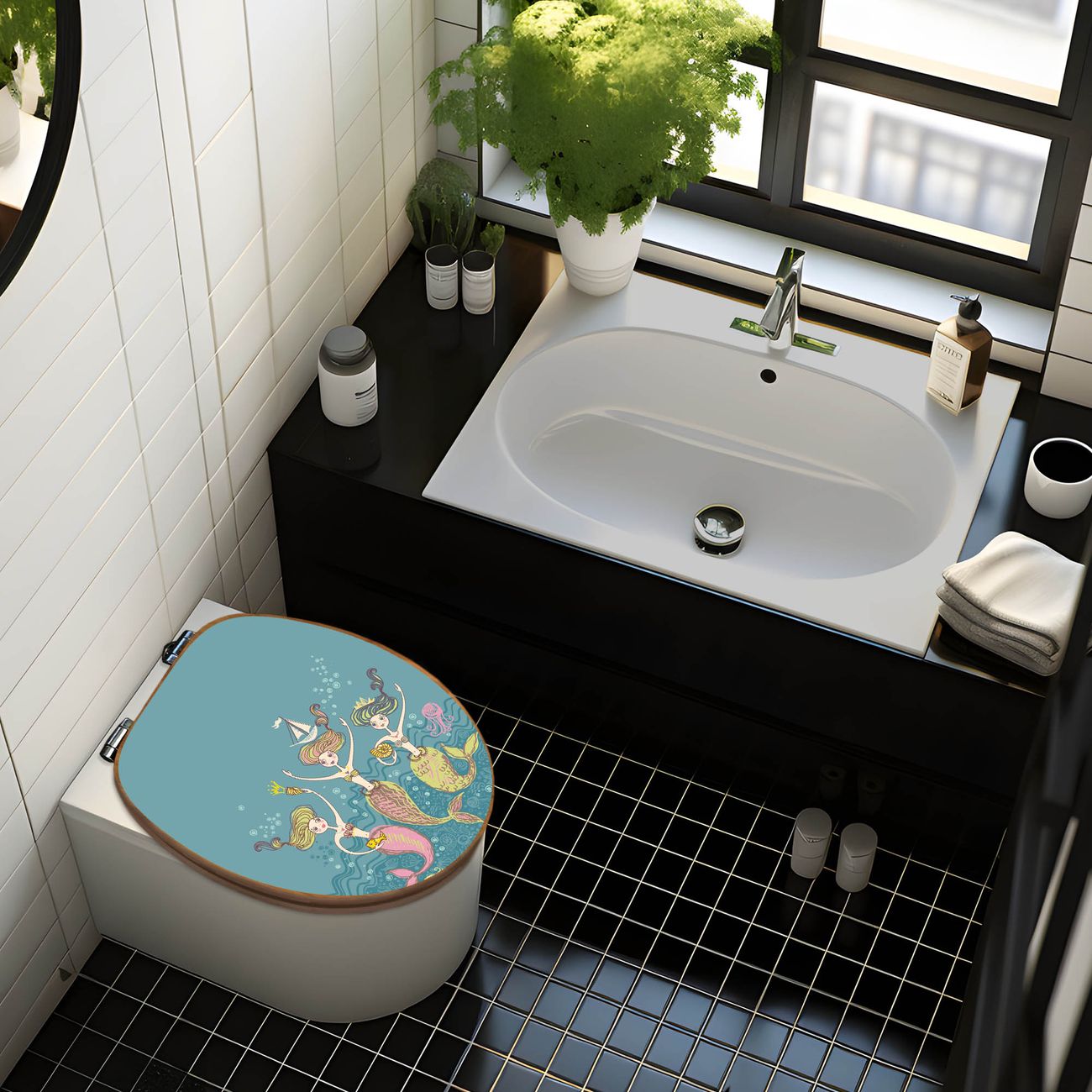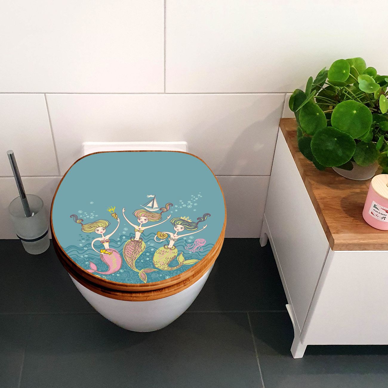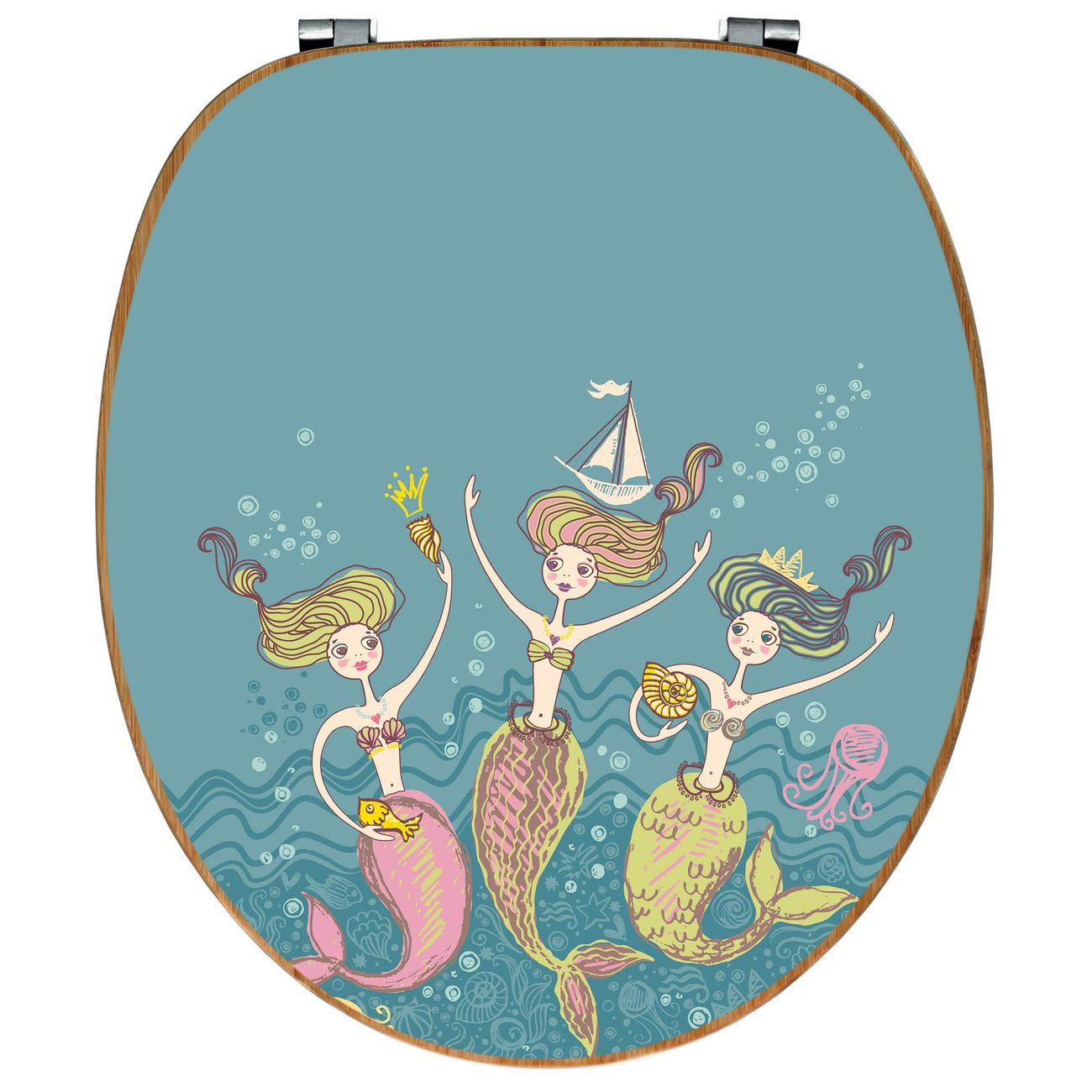 Mit dem banjado Toilettensitz in Bambus verbinden Sie Design und Funktionalität. Sie erhalten den WC-Sitz mit bewährt schwerer Holz Qualität und Universal Scharnieren. Das Motiv Motiv Nixen besteht aus einer schutzlaminierten Motivfolie, die durch das Schutzlaminat zusätzlich vor Kratzern schützt. Durch diesen Motivdruck wird der WC-Sitz zu einem Blickfang in Ihrem Bad.