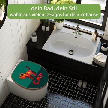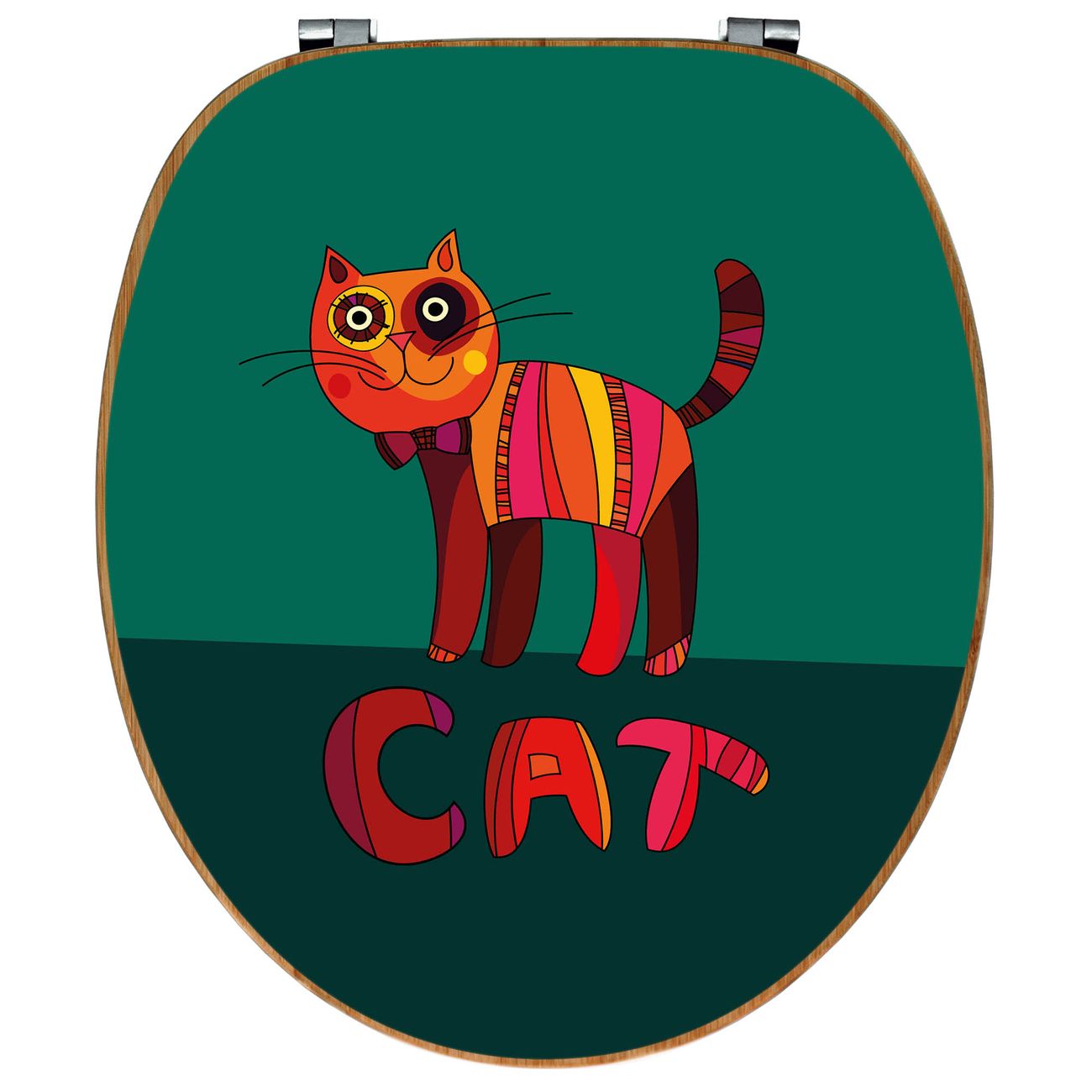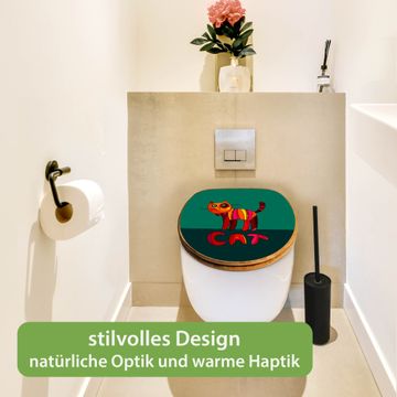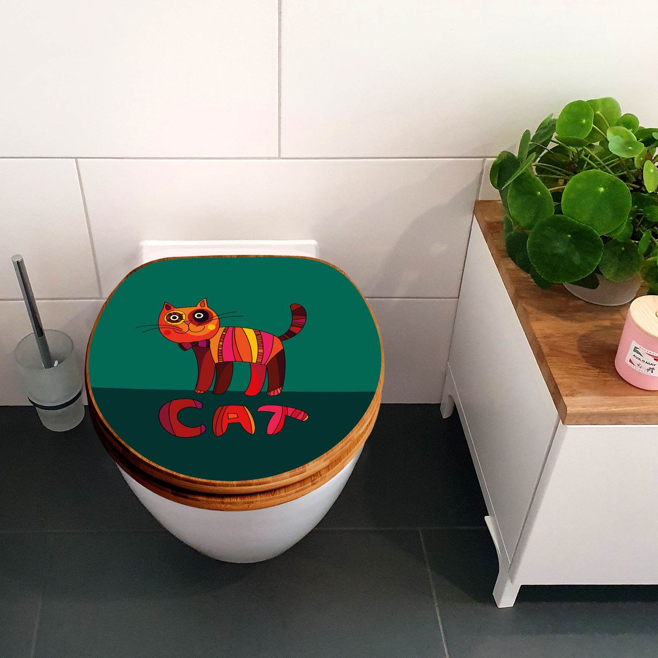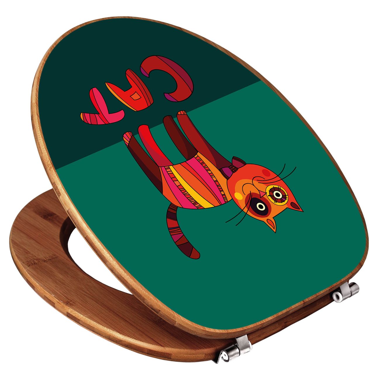 Design WC-Sitz Bambus Holz Motiv Orange Katze
