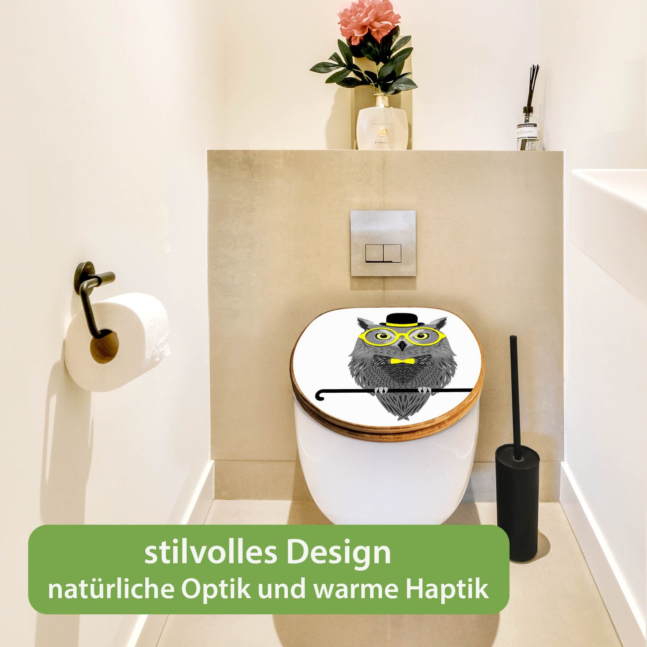 Mit dem banjado Toilettensitz in Bambus verbinden Sie Design und Funktionalität. Sie erhalten den WC-Sitz mit bewährt schwerer Holz Qualität und Universal Scharnieren. Das Motiv Motiv Owling besteht aus einer schutzlaminierten Motivfolie, die durch das Schutzlaminat zusätzlich vor Kratzern schützt. Durch diesen Motivdruck wird der WC-Sitz zu einem Blickfang in Ihrem Bad.