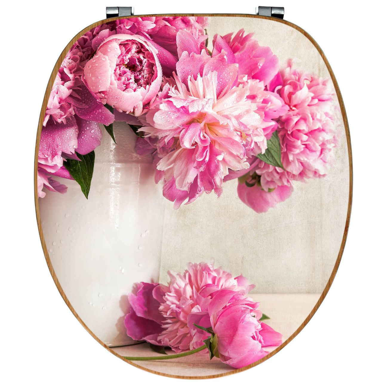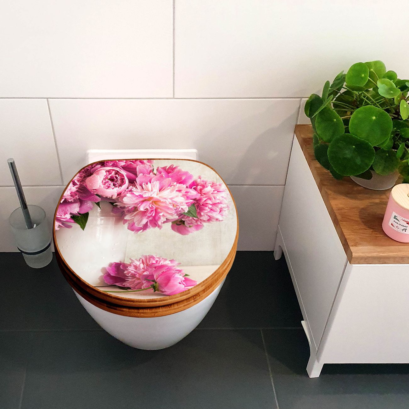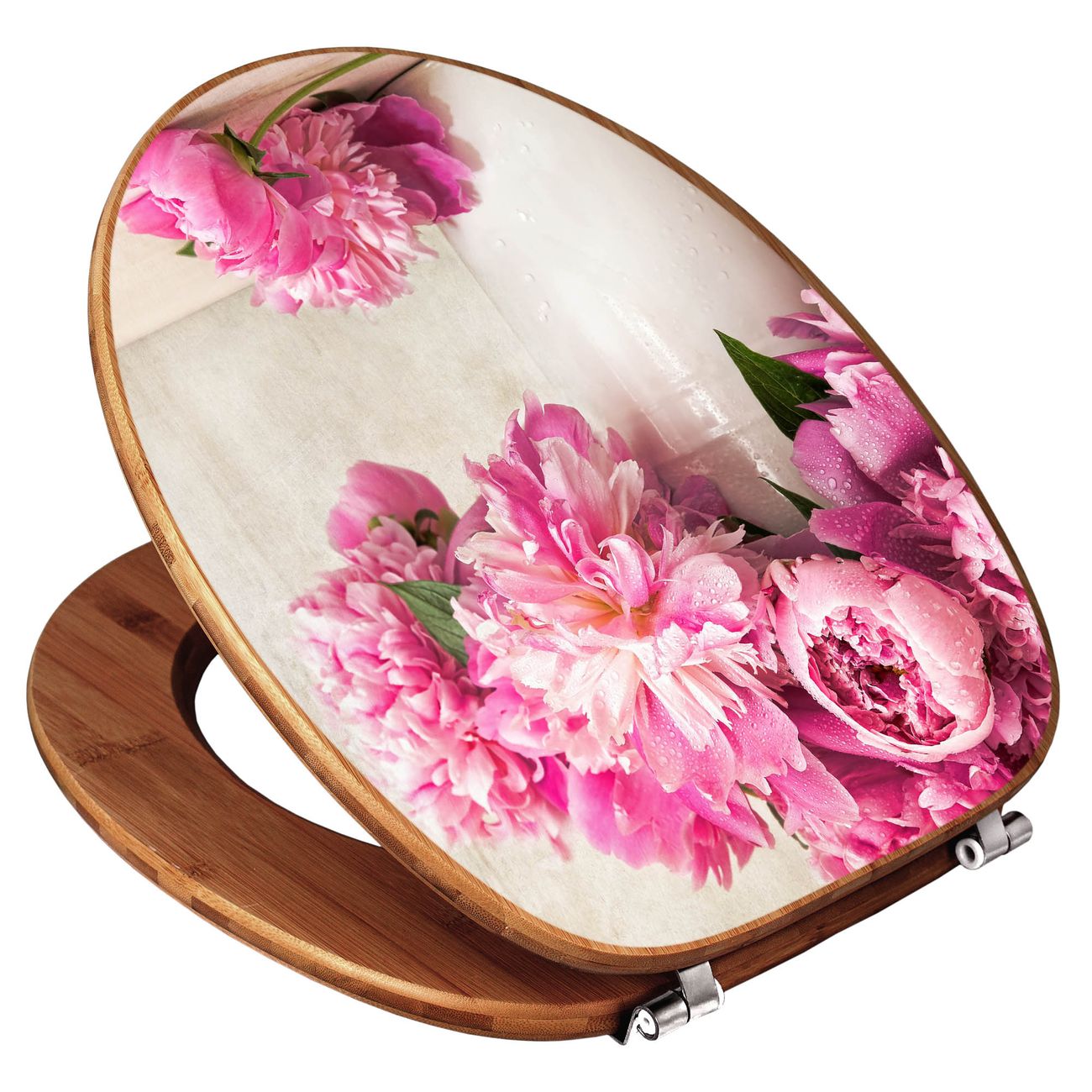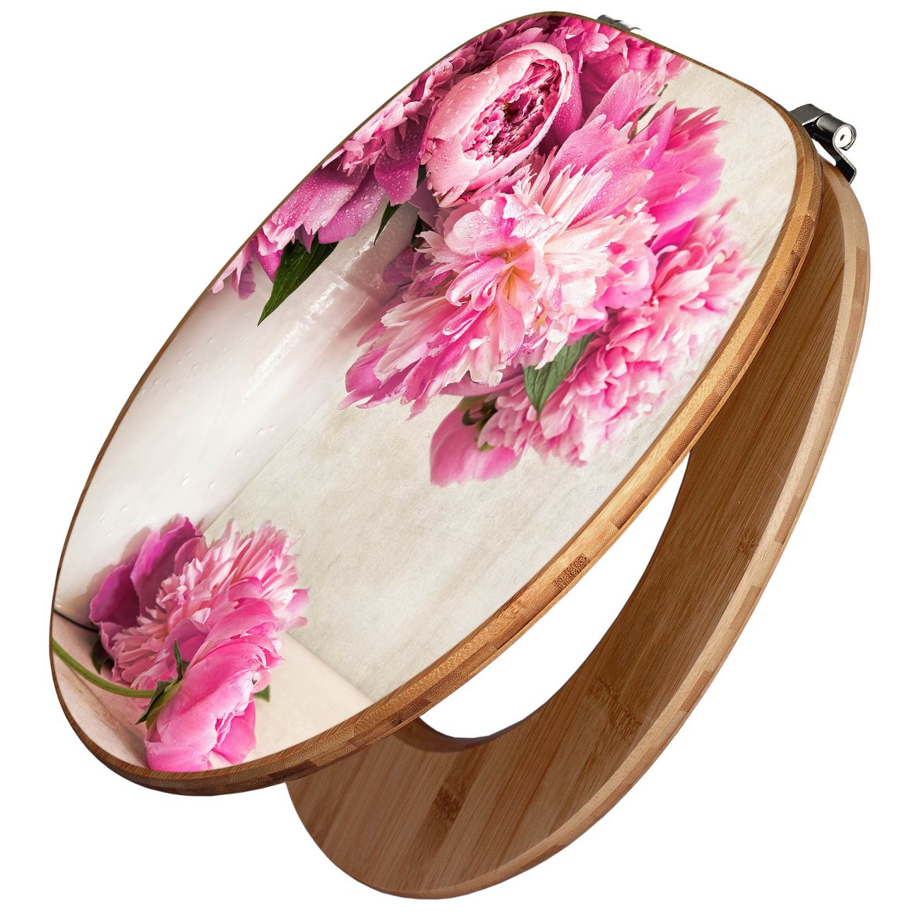 Design WC-Sitz Bambus Holz Motiv Pfingstrose