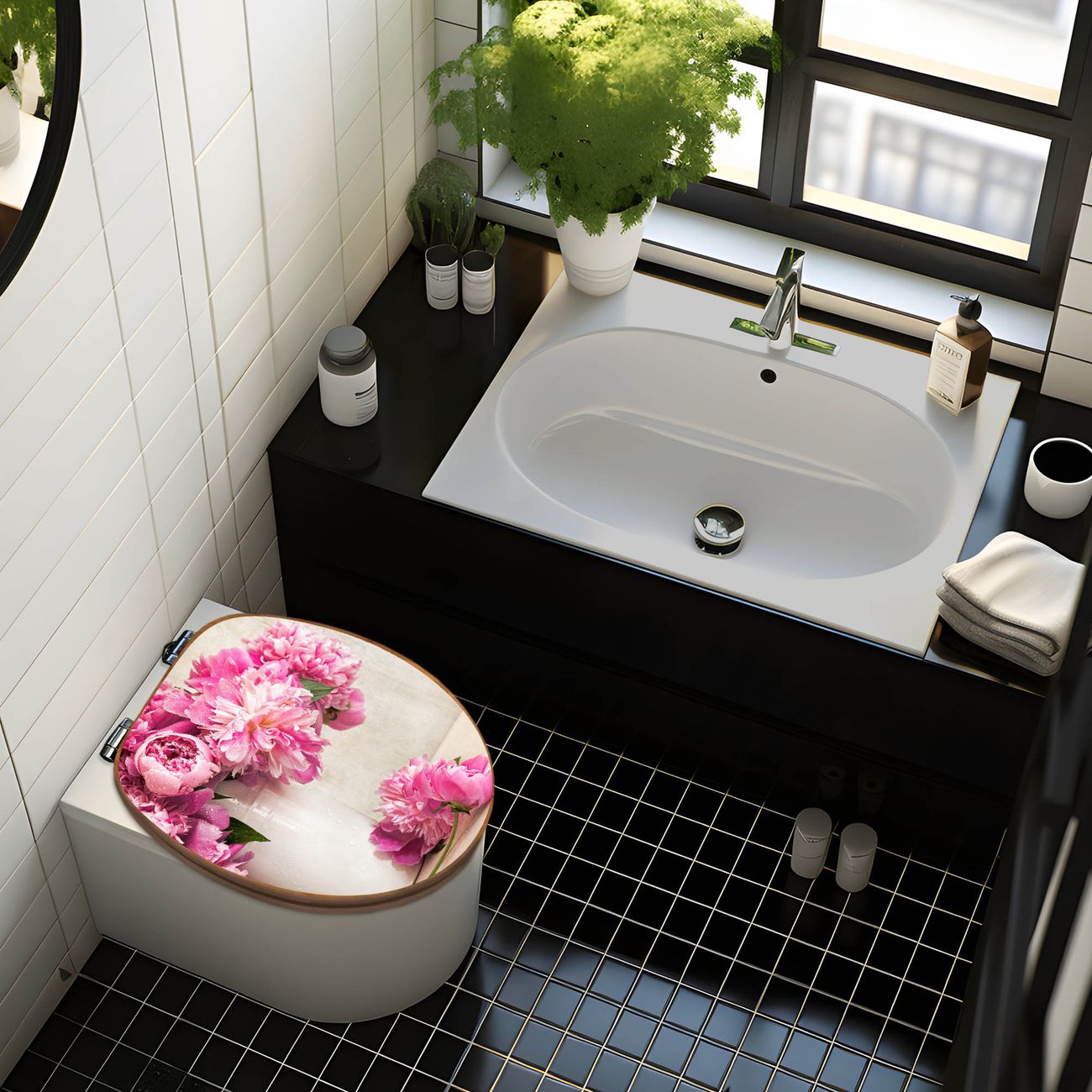 Mit dem banjado Toilettensitz in Bambus verbinden Sie Design und Funktionalität. Sie erhalten den WC-Sitz mit bewährt schwerer Holz Qualität und Universal Scharnieren. Das Motiv Motiv Pfingstrose besteht aus einer schutzlaminierten Motivfolie, die durch das Schutzlaminat zusätzlich vor Kratzern schützt. Durch diesen Motivdruck wird der WC-Sitz zu einem Blickfang in Ihrem Bad.