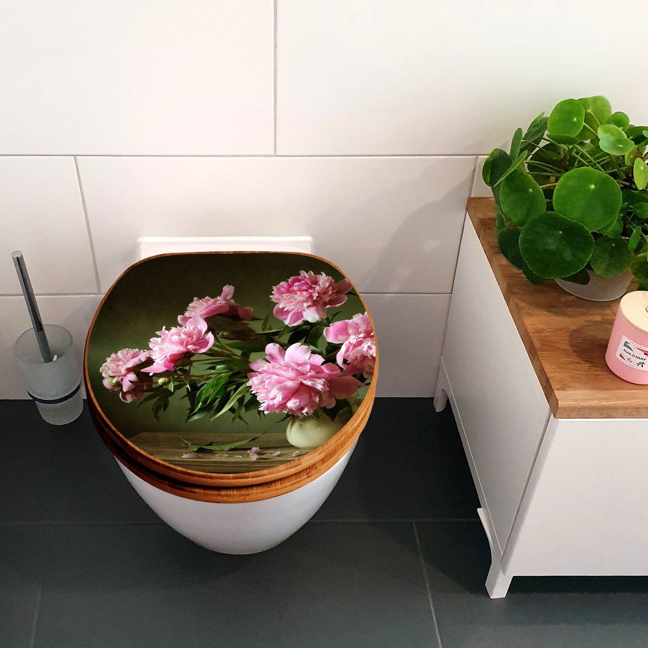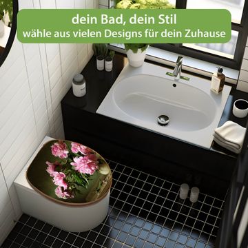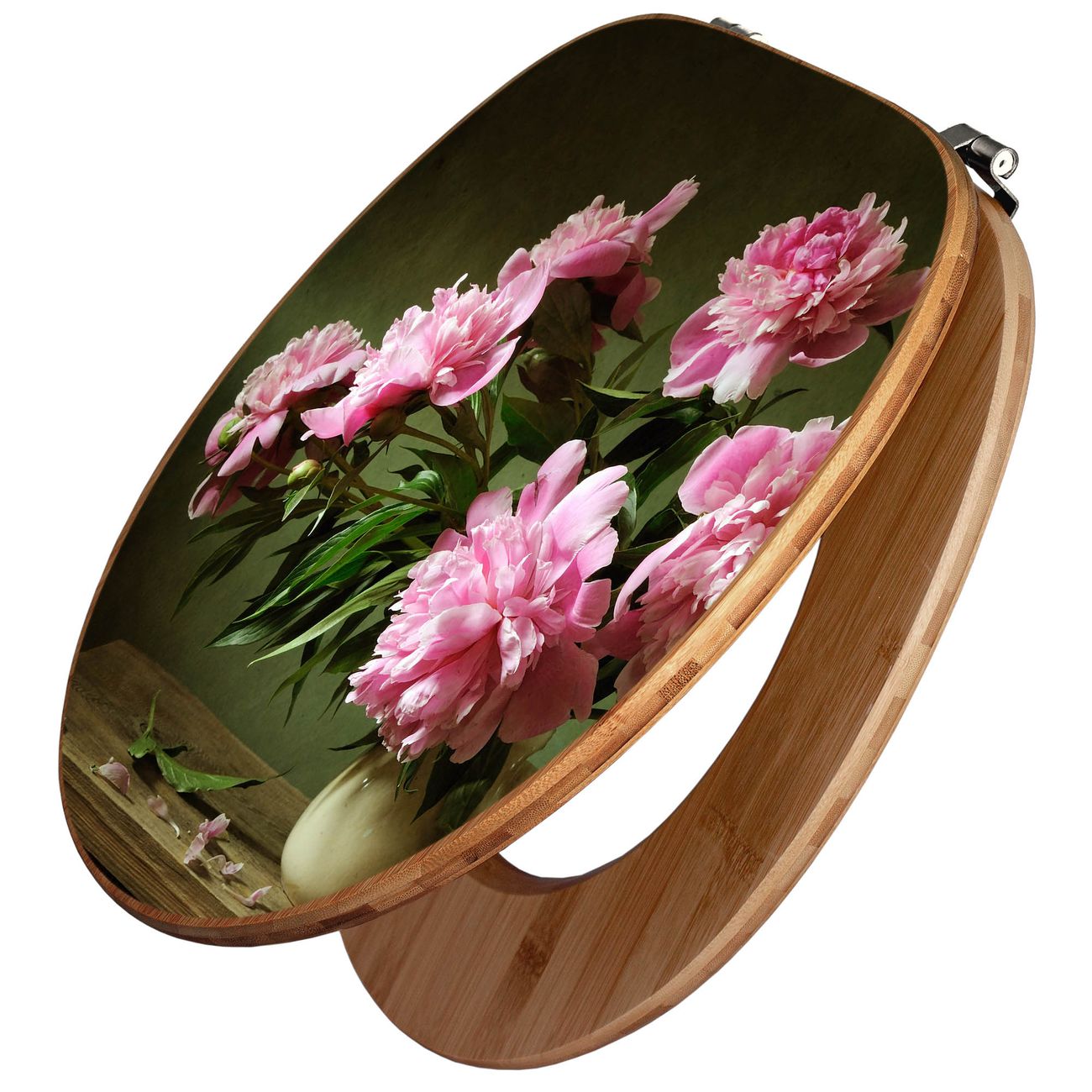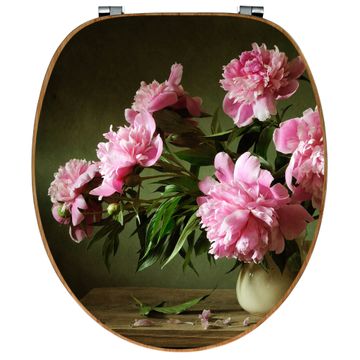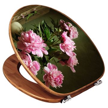 Design WC-Sitz Bambus Holz Motiv Pinke Pfingstrosen