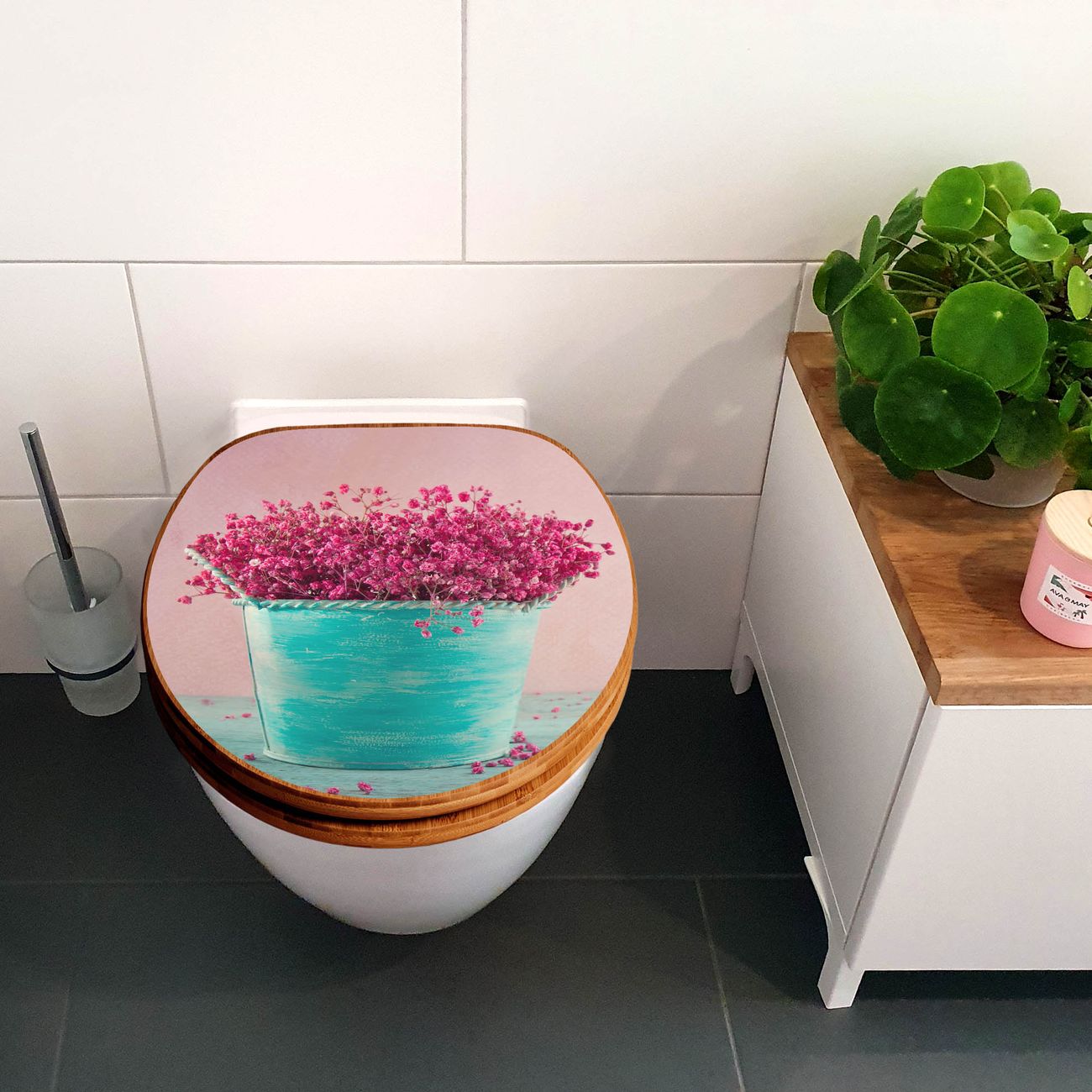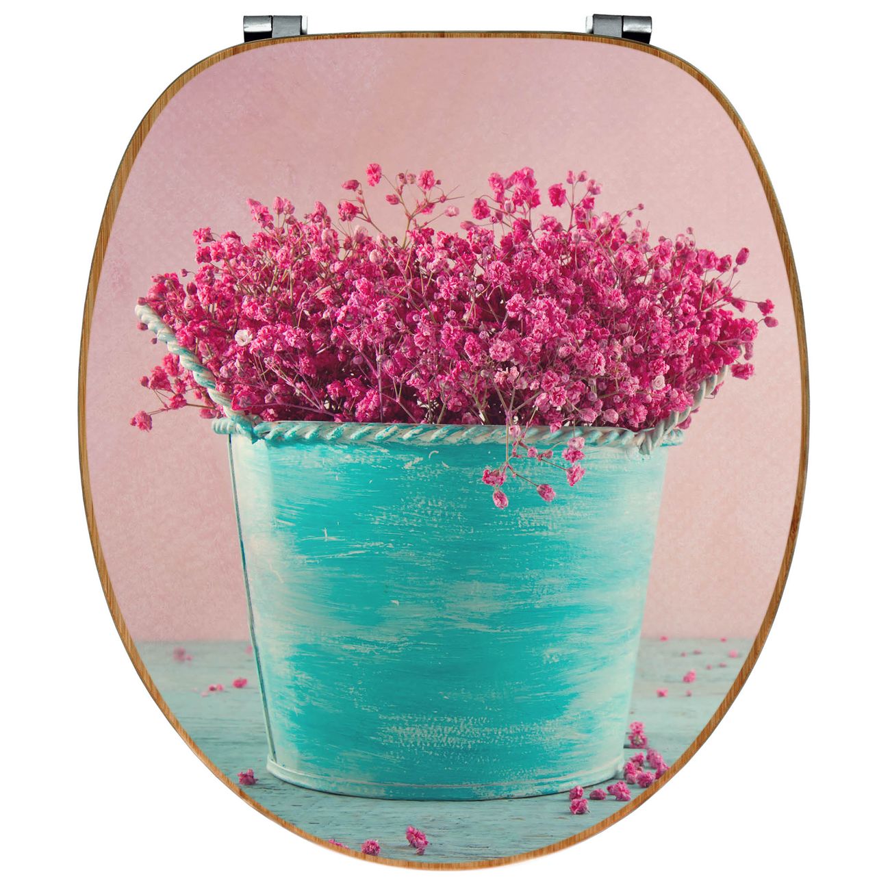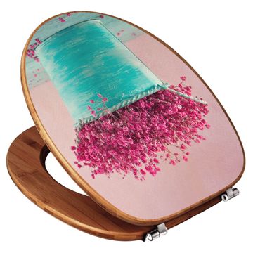 Design WC-Sitz Bambus Holz Motiv Pinke Trockenblumen
