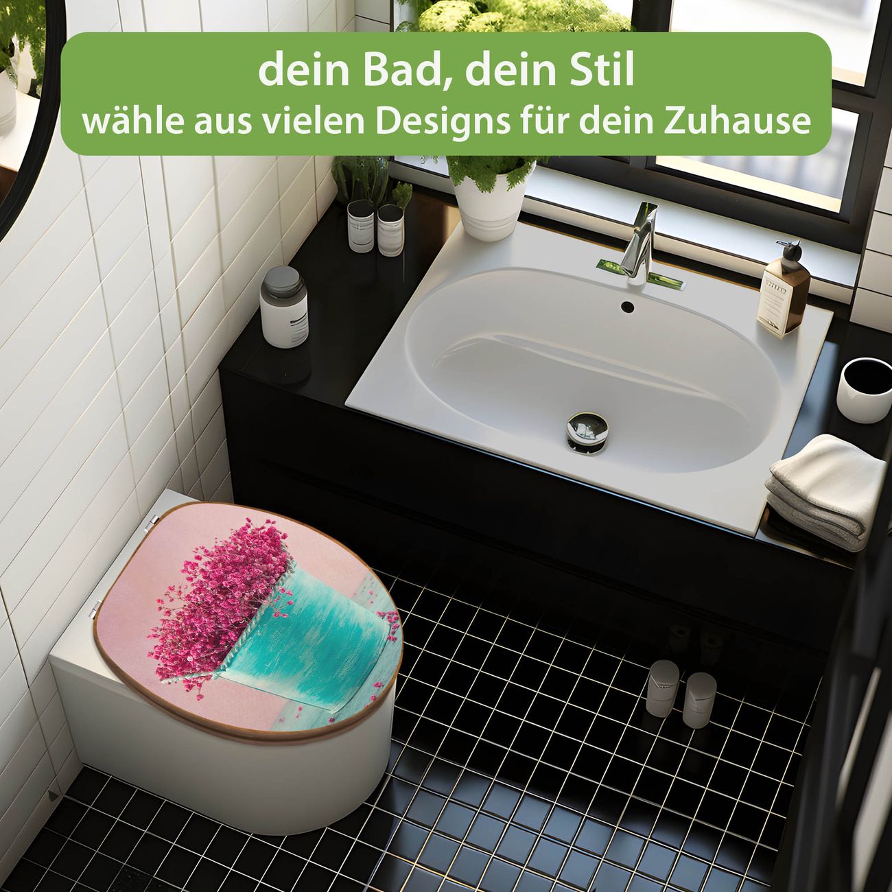 Mit dem banjado Toilettensitz in Bambus verbinden Sie Design und Funktionalität. Sie erhalten den WC-Sitz mit bewährt schwerer Holz Qualität und Universal Scharnieren. Das Motiv Motiv Pinke Trockenblumen besteht aus einer schutzlaminierten Motivfolie, die durch das Schutzlaminat zusätzlich vor Kratzern schützt. Durch diesen Motivdruck wird der WC-Sitz zu einem Blickfang in Ihrem Bad.