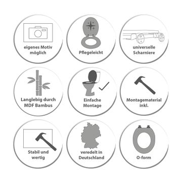 Mit dem banjado Toilettensitz in Bambus verbinden Sie Design und Funktionalität. Sie erhalten den WC-Sitz mit bewährt schwerer Holz Qualität und Universal Scharnieren. Das Motiv besteht aus einer schutzlaminierten Motivfolie, die durch das Schutzlaminat zusätzlich vor Kratzern schützt. Durch diesen Motivdruck wird der WC-Sitz zu einem Blickfang in Ihrem Bad.