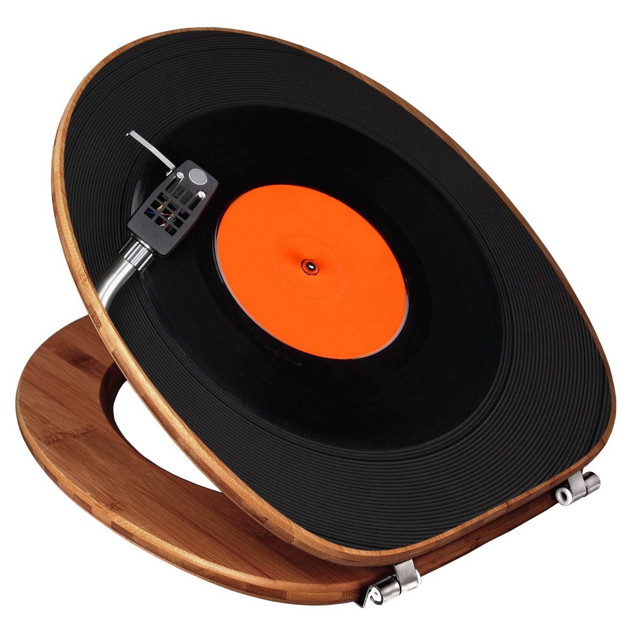 Design WC-Sitz Bambus Holz Motiv Plattenspieler