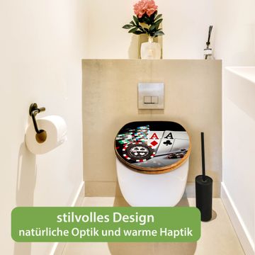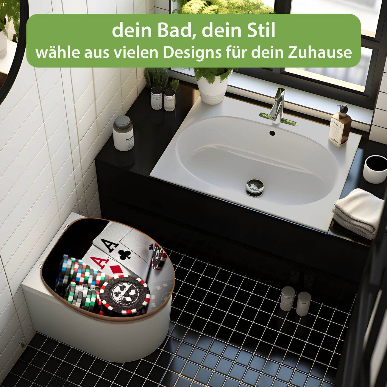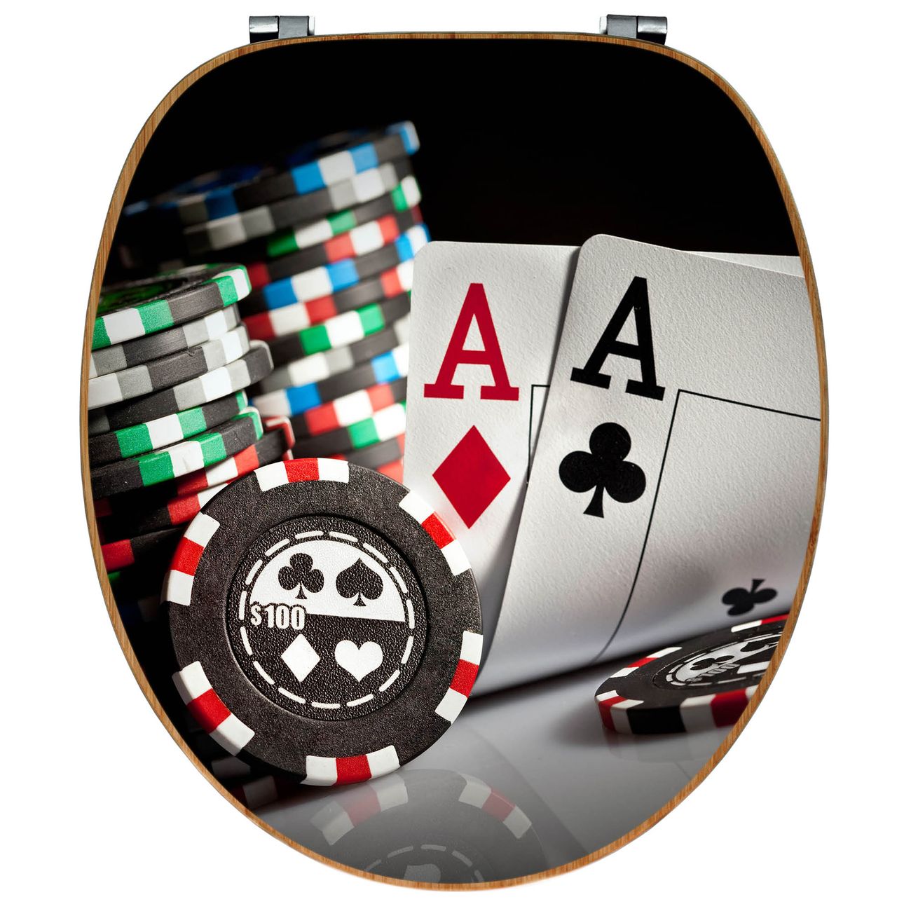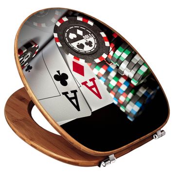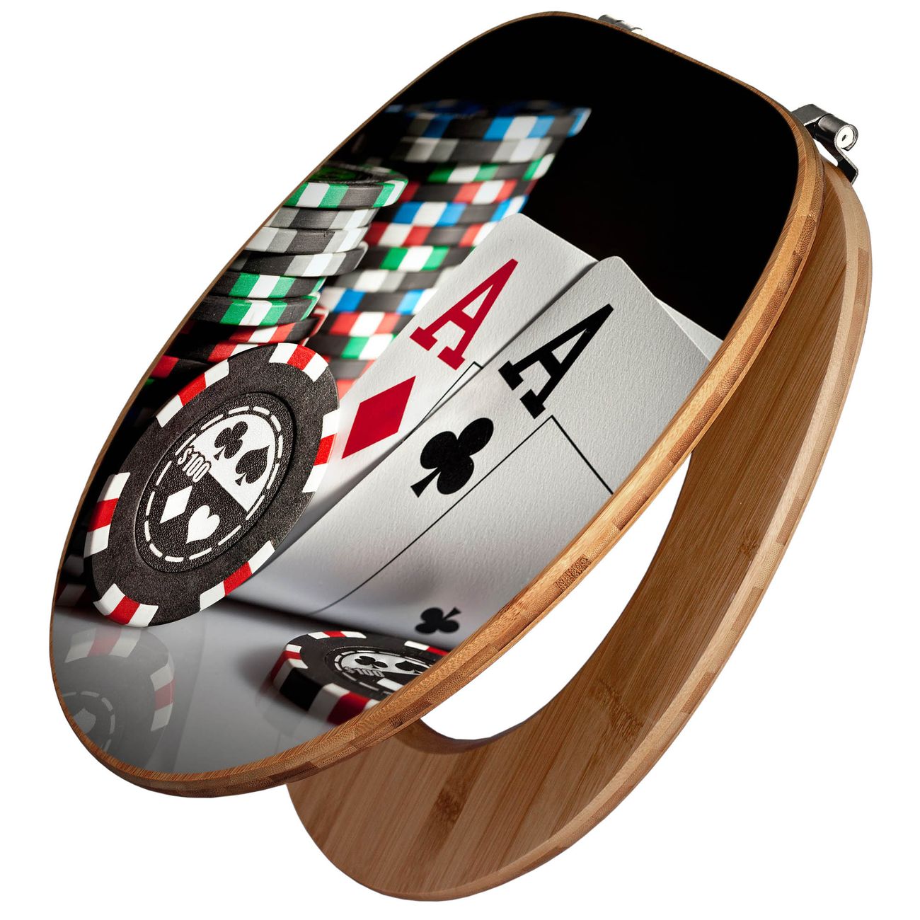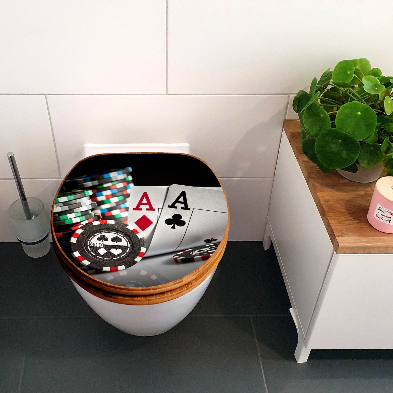 Mit dem banjado Toilettensitz in Bambus verbinden Sie Design und Funktionalität. Sie erhalten den WC-Sitz mit bewährt schwerer Holz Qualität und Universal Scharnieren. Das Motiv Motiv Poker besteht aus einer schutzlaminierten Motivfolie, die durch das Schutzlaminat zusätzlich vor Kratzern schützt. Durch diesen Motivdruck wird der WC-Sitz zu einem Blickfang in Ihrem Bad.