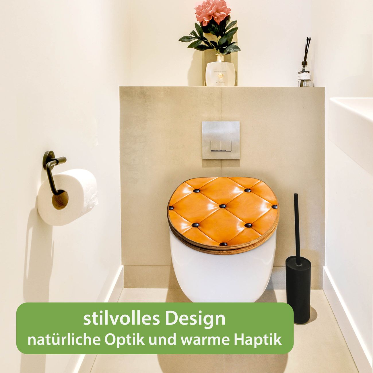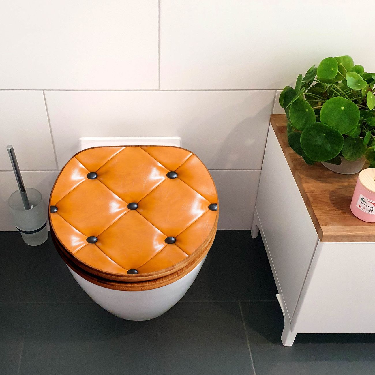 Design WC-Sitz Bambus Holz Motiv Polster Orange