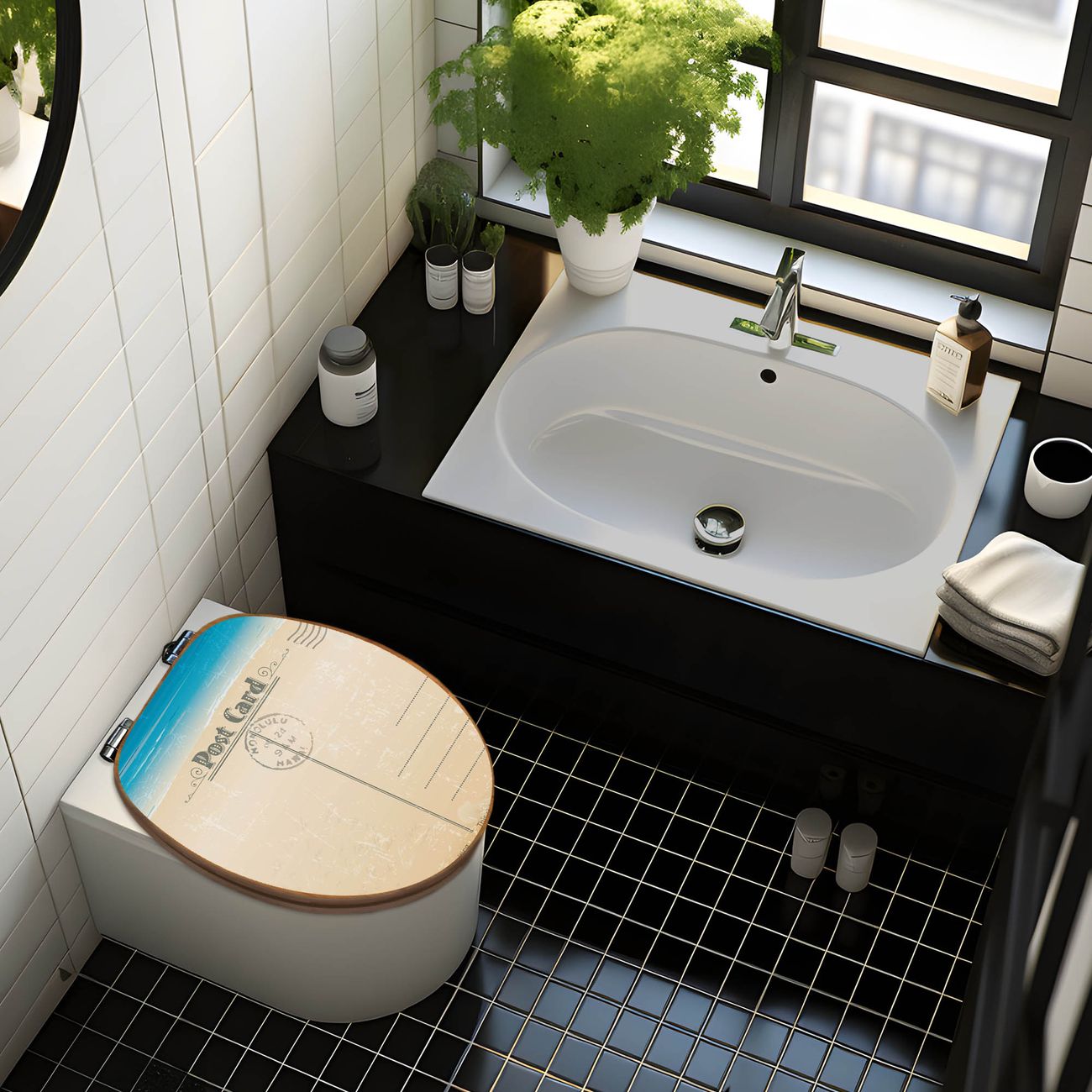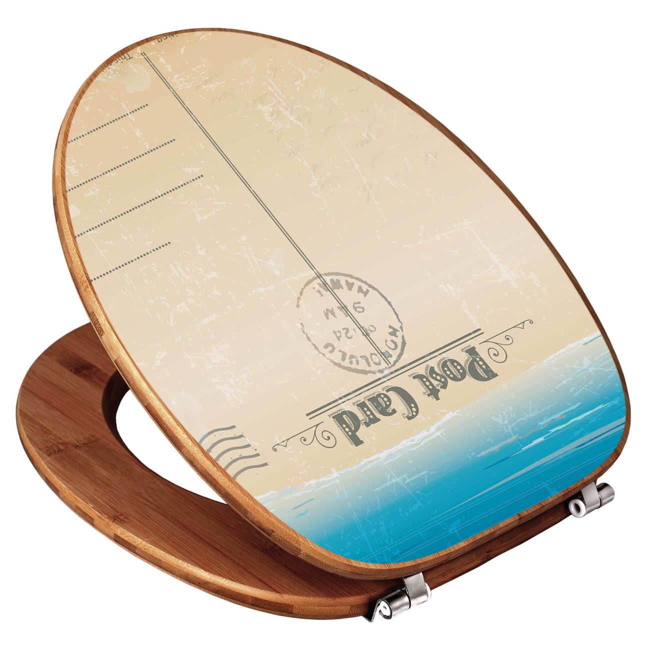 Mit dem banjado Toilettensitz in Bambus verbinden Sie Design und Funktionalität. Sie erhalten den WC-Sitz mit bewährt schwerer Holz Qualität und Universal Scharnieren. Das Motiv Motiv Postkarte besteht aus einer schutzlaminierten Motivfolie, die durch das Schutzlaminat zusätzlich vor Kratzern schützt. Durch diesen Motivdruck wird der WC-Sitz zu einem Blickfang in Ihrem Bad.