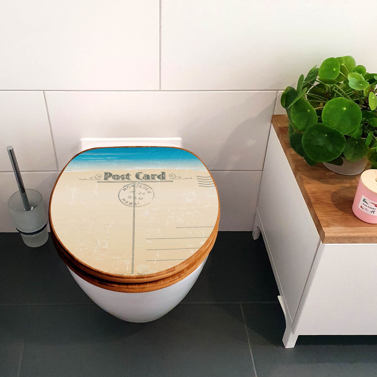 Design WC-Sitz Bambus Holz Motiv Postkarte
