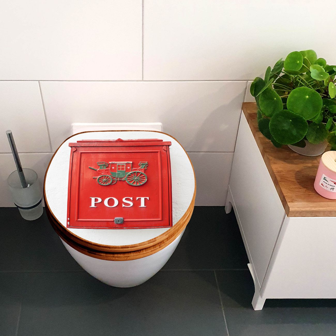 Design WC-Sitz Bambus Holz Motiv Postkasten Nostalgie