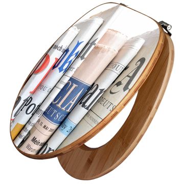 Mit dem banjado Toilettensitz in Bambus verbinden Sie Design und Funktionalität. Sie erhalten den WC-Sitz mit bewährt schwerer Holz Qualität und Universal Scharnieren. Das Motiv Motiv Presse besteht aus einer schutzlaminierten Motivfolie, die durch das Schutzlaminat zusätzlich vor Kratzern schützt. Durch diesen Motivdruck wird der WC-Sitz zu einem Blickfang in Ihrem Bad.