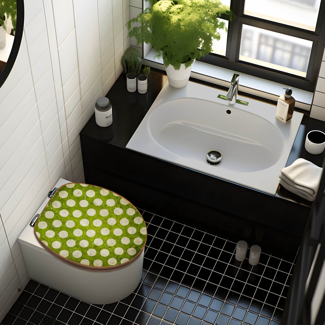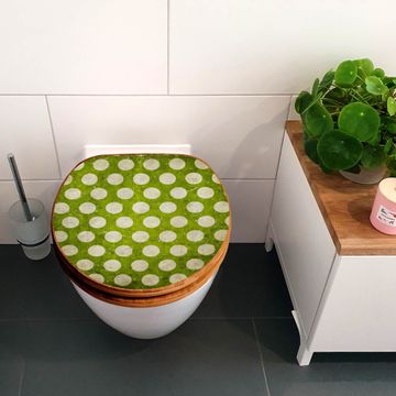 Design WC-Sitz Bambus Holz Motiv Punkte Grün Vintage