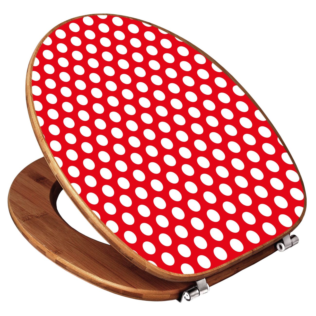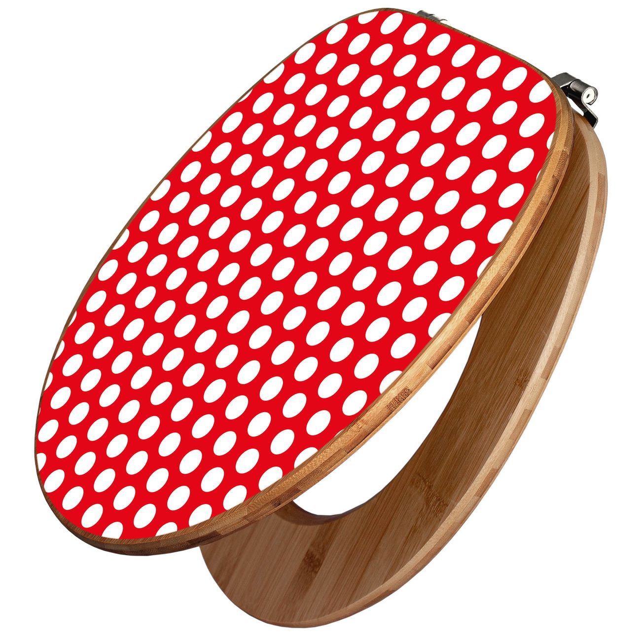 Design WC-Sitz Bambus Holz Motiv Punkte Rot