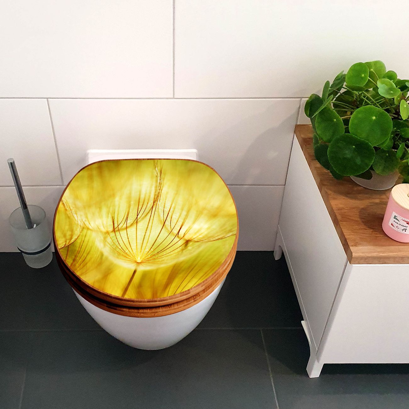 Design WC-Sitz Bambus Holz Motiv Pusteblumen Gold