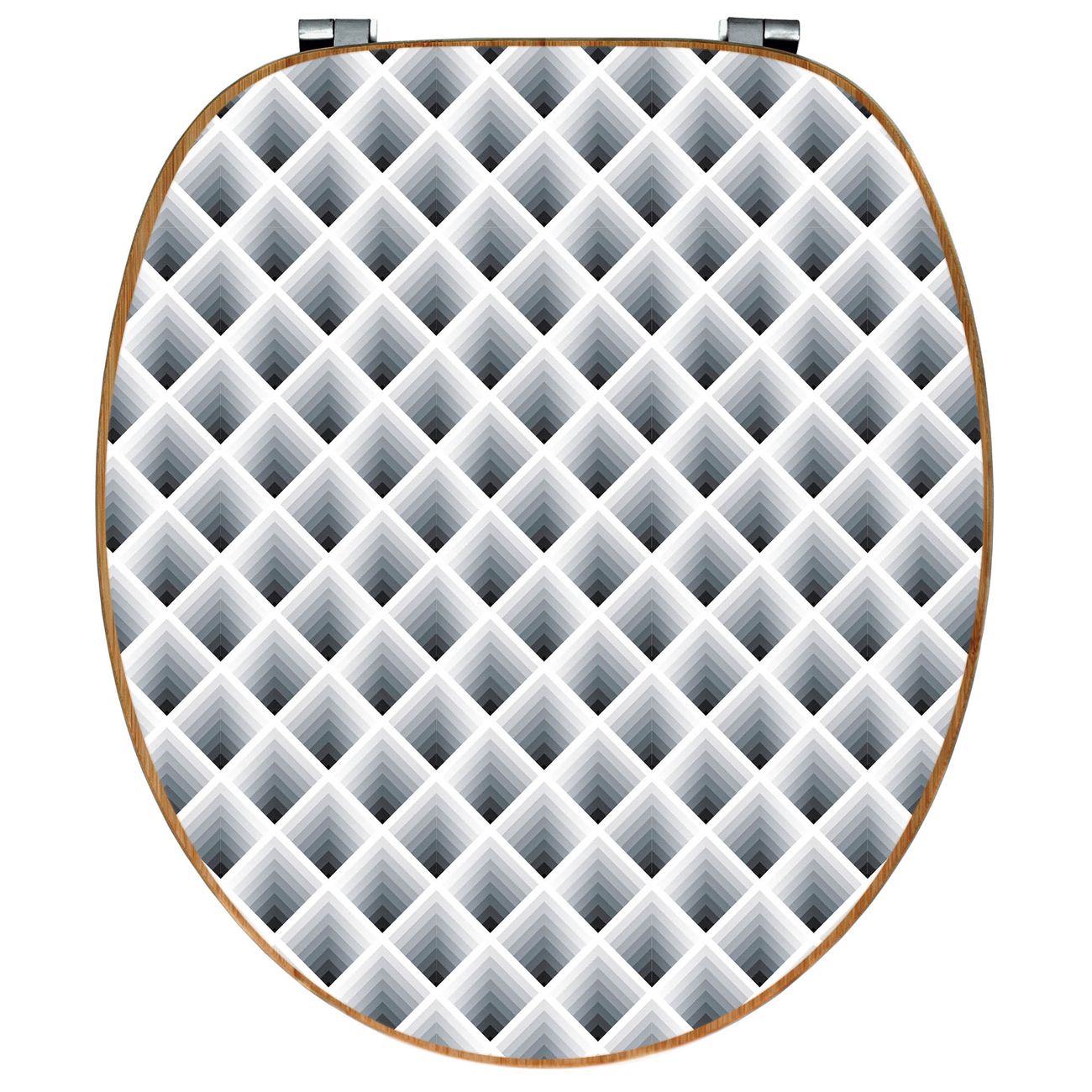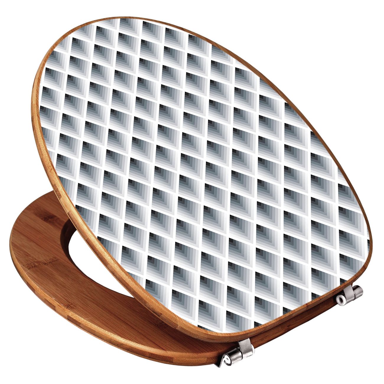Mit dem banjado Toilettensitz in Bambus verbinden Sie Design und Funktionalität. Sie erhalten den WC-Sitz mit bewährt schwerer Holz Qualität und Universal Scharnieren. Das Motiv Motiv Raster 3D Grau besteht aus einer schutzlaminierten Motivfolie, die durch das Schutzlaminat zusätzlich vor Kratzern schützt. Durch diesen Motivdruck wird der WC-Sitz zu einem Blickfang in Ihrem Bad.