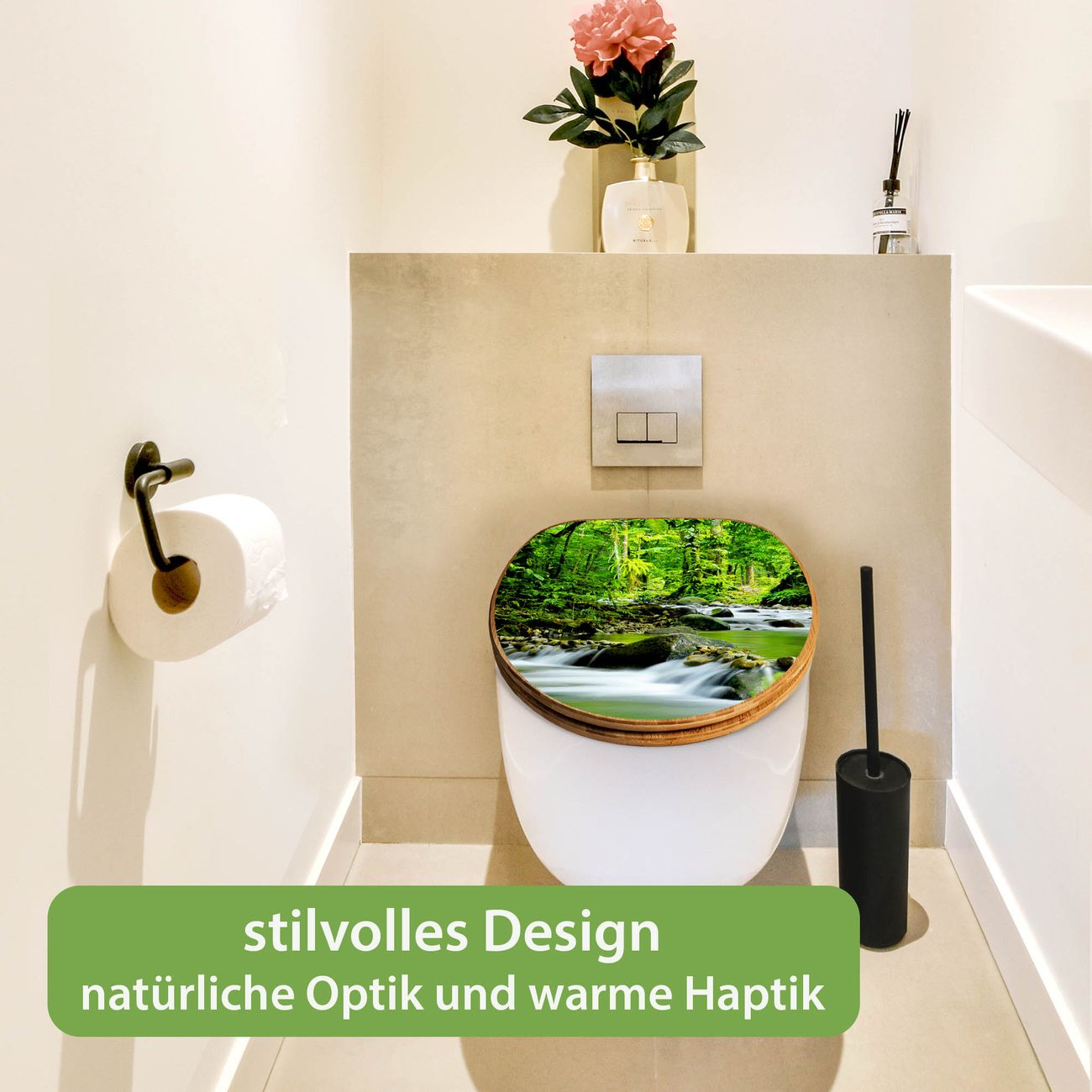 Mit dem banjado Toilettensitz in Bambus verbinden Sie Design und Funktionalität. Sie erhalten den WC-Sitz mit bewährt schwerer Holz Qualität und Universal Scharnieren. Das Motiv Motiv Rauschender Bach besteht aus einer schutzlaminierten Motivfolie, die durch das Schutzlaminat zusätzlich vor Kratzern schützt. Durch diesen Motivdruck wird der WC-Sitz zu einem Blickfang in Ihrem Bad.