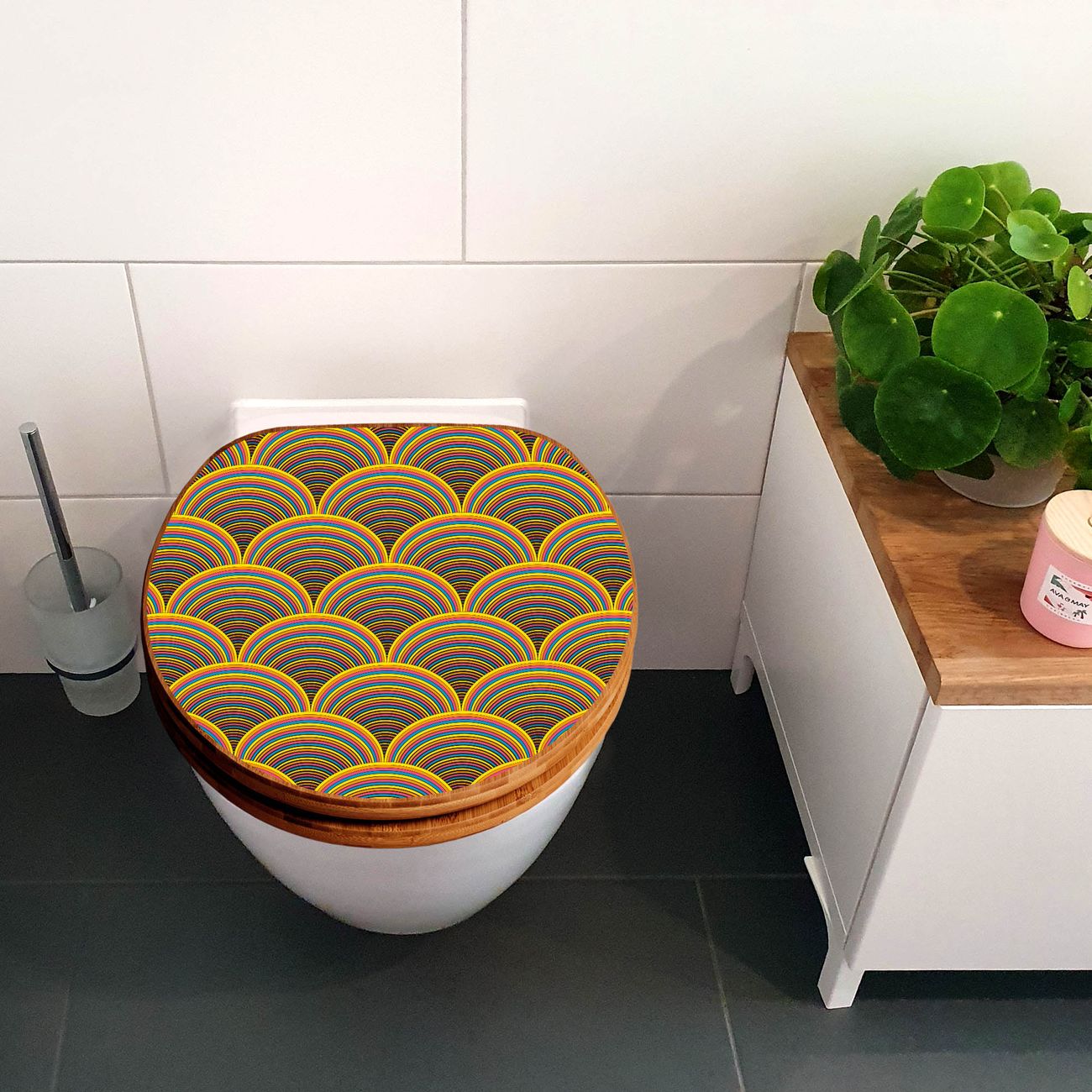 Design WC-Sitz Bambus Holz Motiv Regenbögen