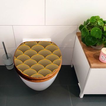 Mit dem banjado Toilettensitz in Bambus verbinden Sie Design und Funktionalität. Sie erhalten den WC-Sitz mit bewährt schwerer Holz Qualität und Universal Scharnieren. Das Motiv Motiv Regenbögen besteht aus einer schutzlaminierten Motivfolie, die durch das Schutzlaminat zusätzlich vor Kratzern schützt. Durch diesen Motivdruck wird der WC-Sitz zu einem Blickfang in Ihrem Bad.