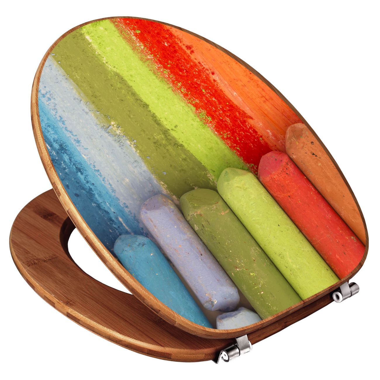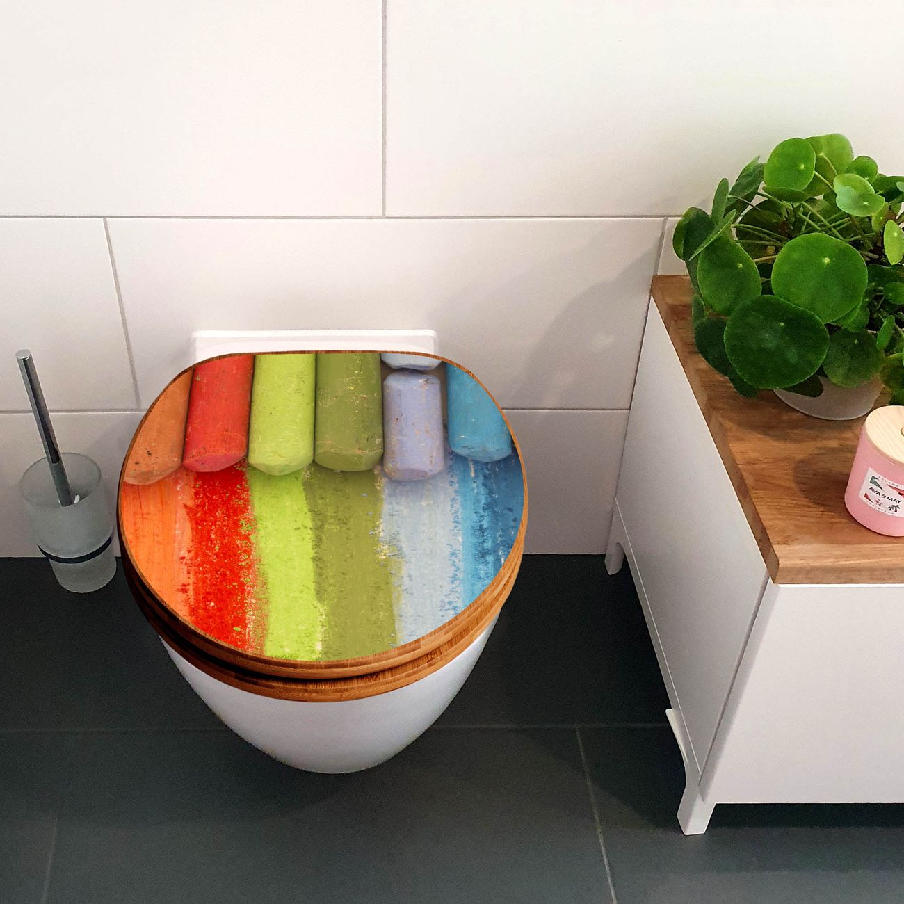 Design WC-Sitz Bambus Holz Motiv Regenbogenkreide