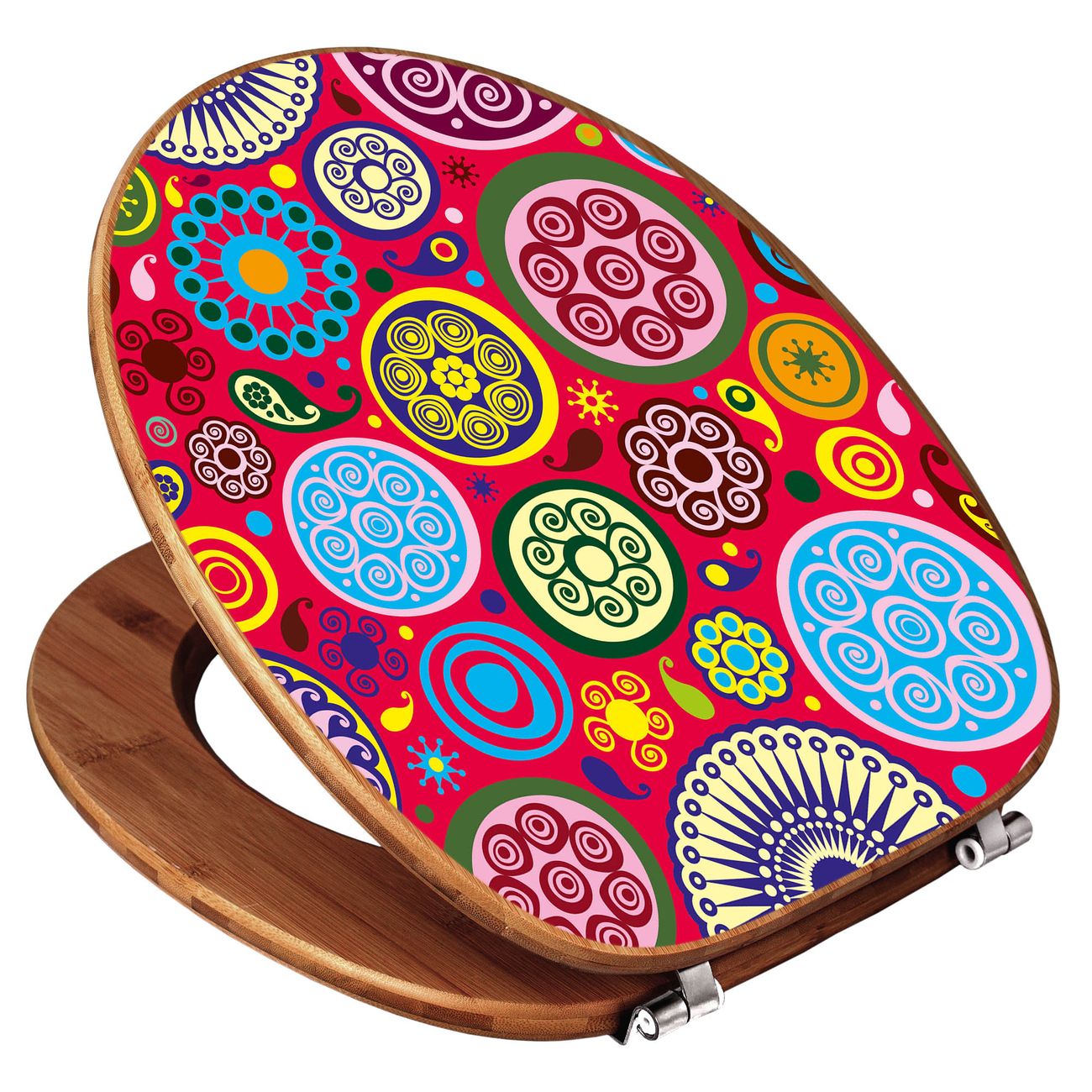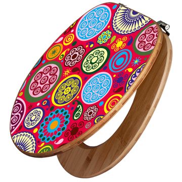 Design WC-Sitz Bambus Holz Motiv Retro Kreise
