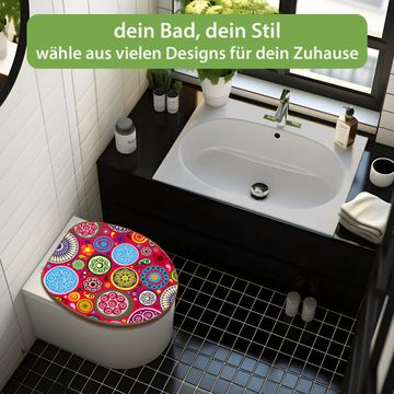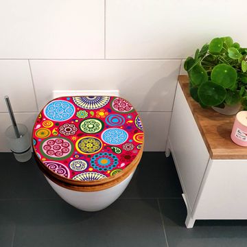 Mit dem banjado Toilettensitz in Bambus verbinden Sie Design und Funktionalität. Sie erhalten den WC-Sitz mit bewährt schwerer Holz Qualität und Universal Scharnieren. Das Motiv Motiv Retro Kreise besteht aus einer schutzlaminierten Motivfolie, die durch das Schutzlaminat zusätzlich vor Kratzern schützt. Durch diesen Motivdruck wird der WC-Sitz zu einem Blickfang in Ihrem Bad.