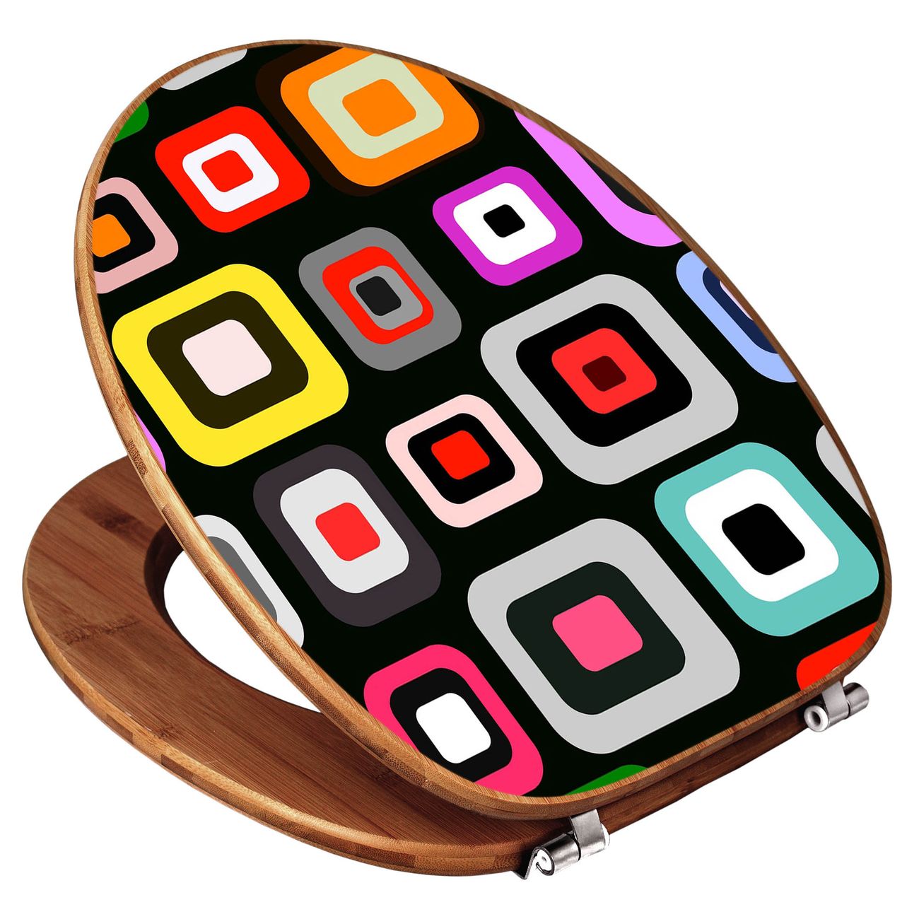 Mit dem banjado Toilettensitz in Bambus verbinden Sie Design und Funktionalität. Sie erhalten den WC-Sitz mit bewährt schwerer Holz Qualität und Universal Scharnieren. Das Motiv Motiv Retro besteht aus einer schutzlaminierten Motivfolie, die durch das Schutzlaminat zusätzlich vor Kratzern schützt. Durch diesen Motivdruck wird der WC-Sitz zu einem Blickfang in Ihrem Bad.