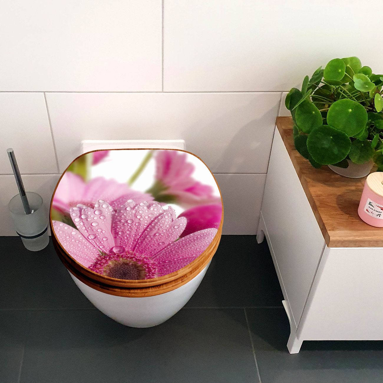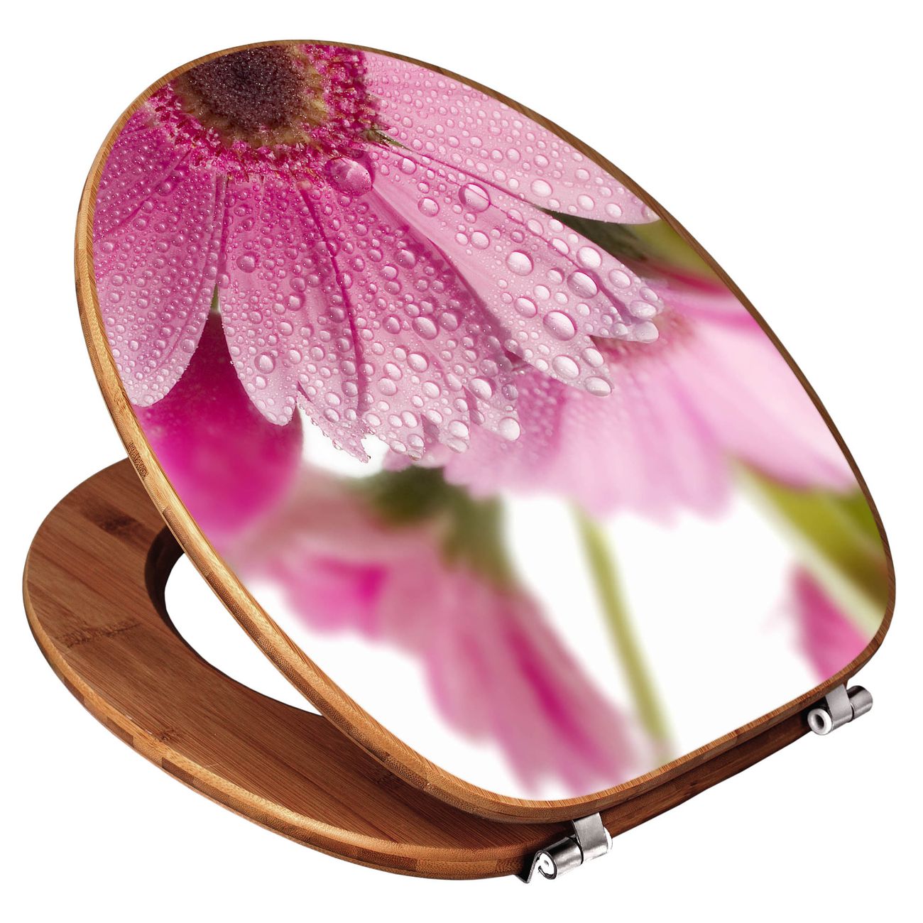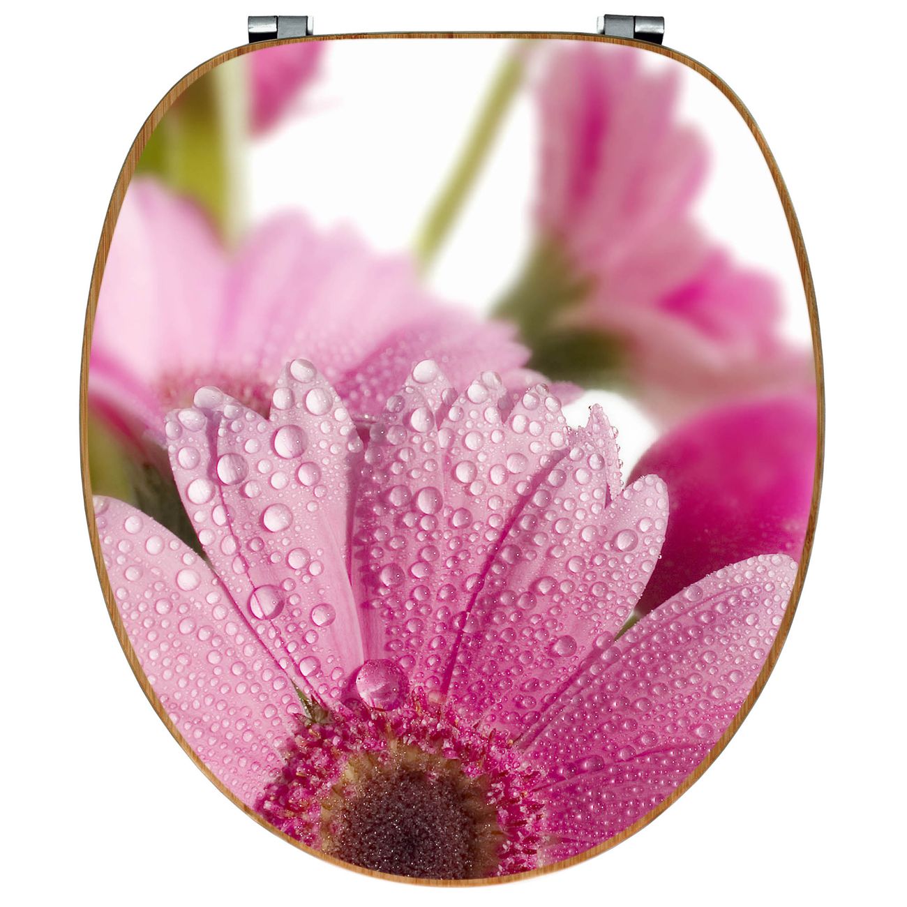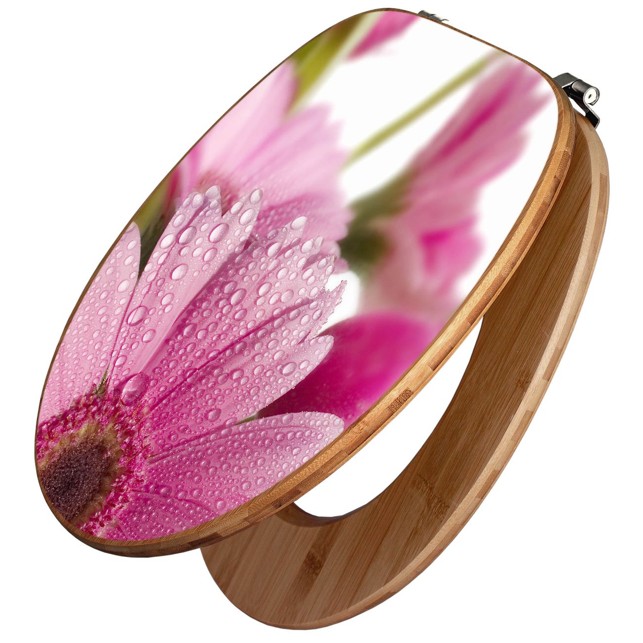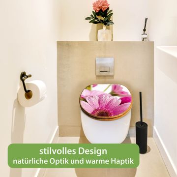 Design WC-Sitz Bambus Holz Motiv Rosa Gerbera