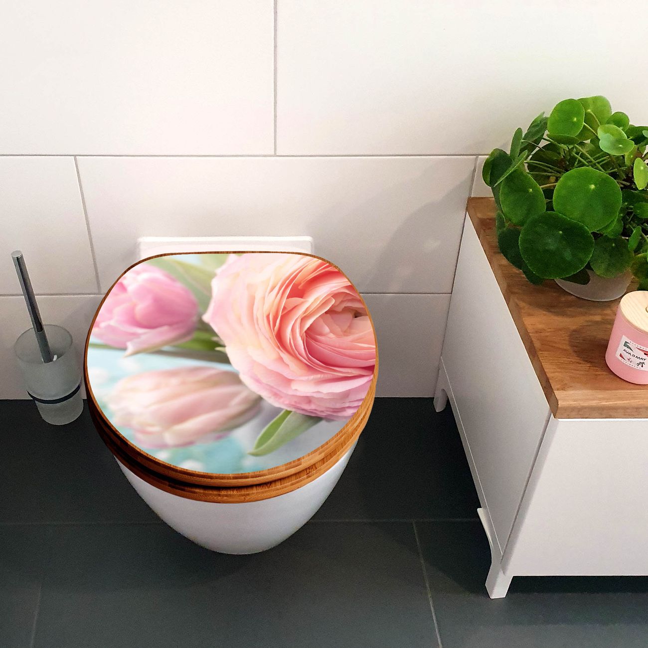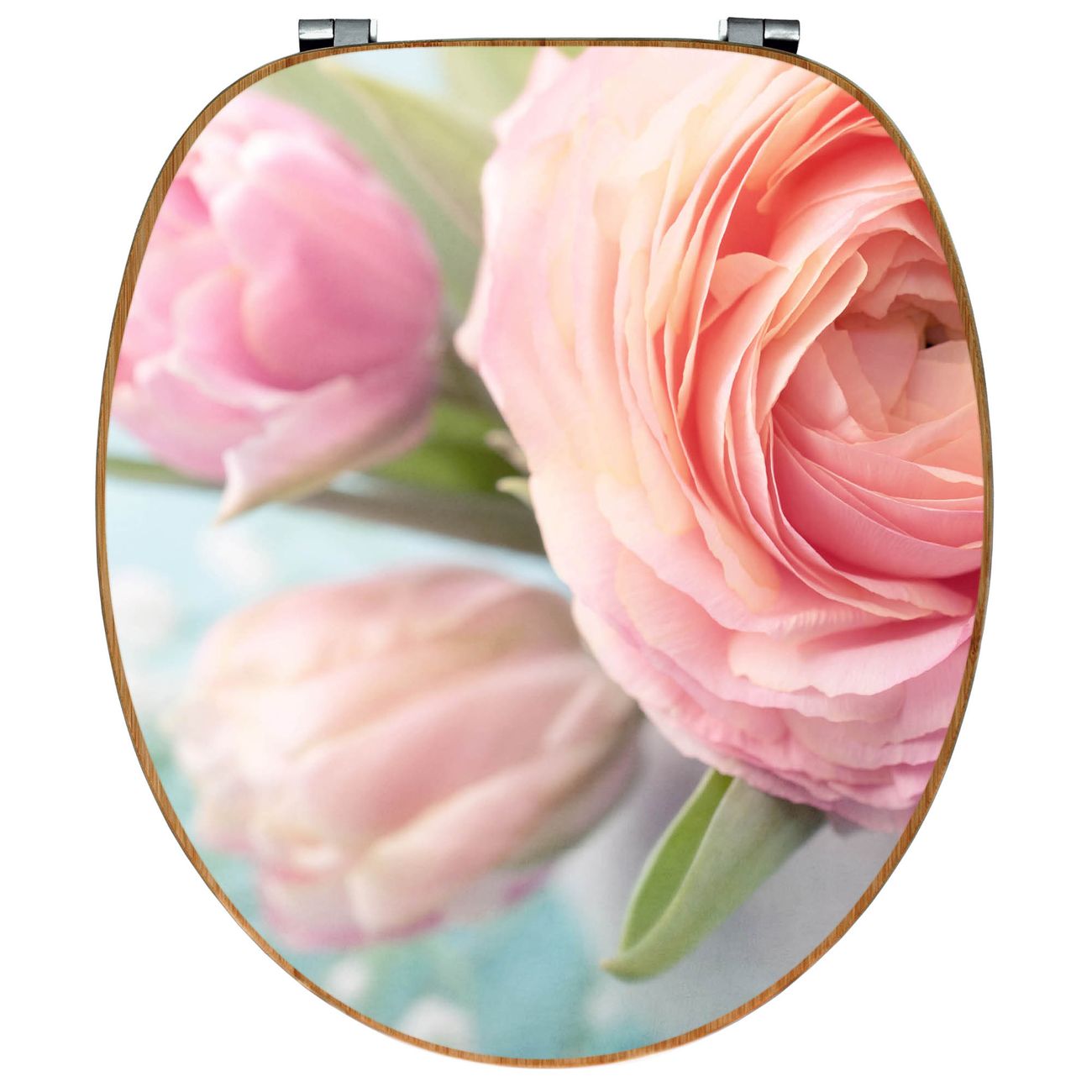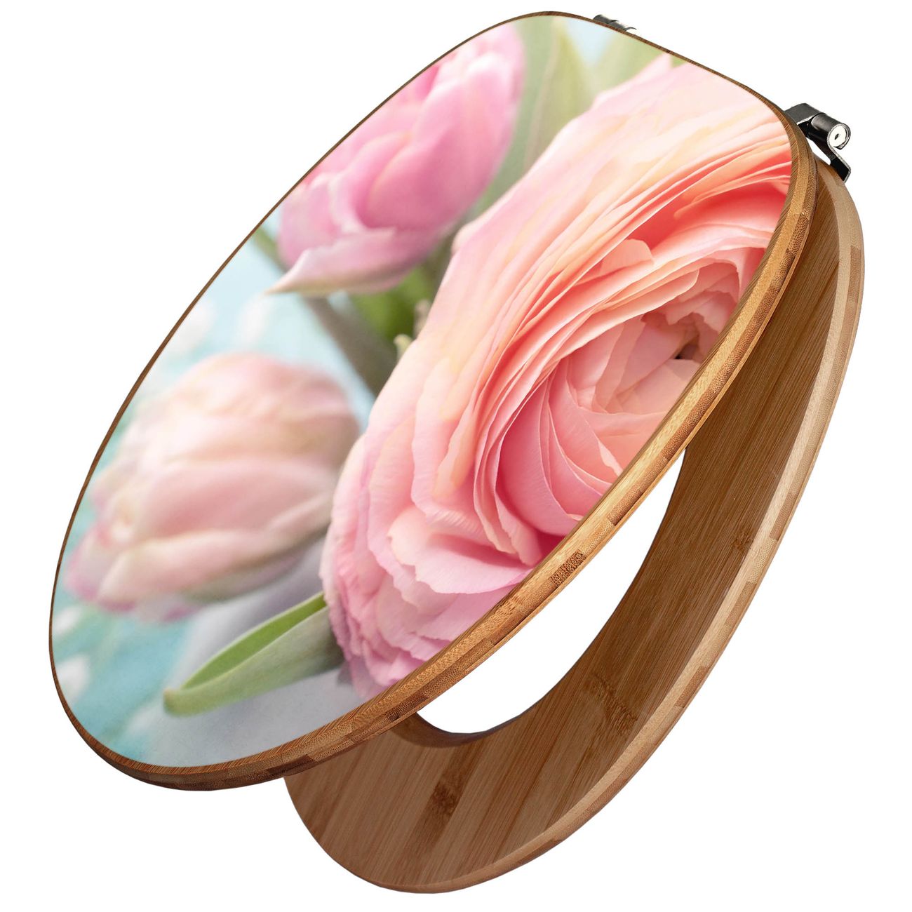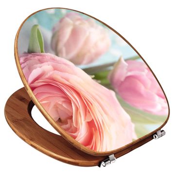 Design WC-Sitz Bambus Holz Motiv Rosa Tulpe