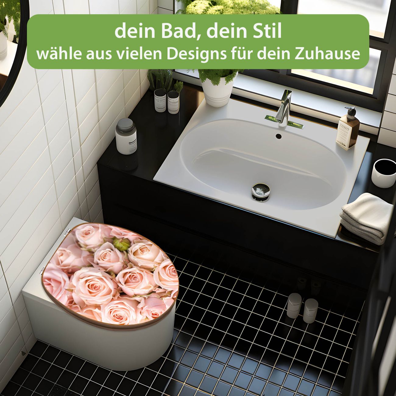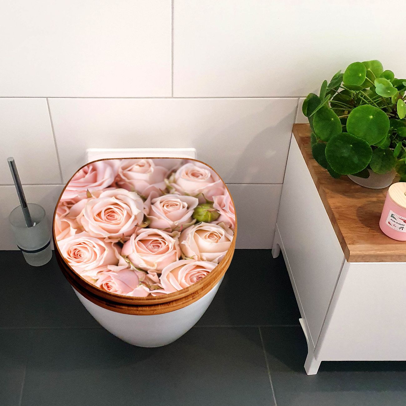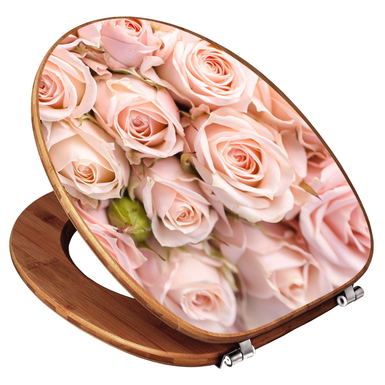 Design WC-Sitz Bambus Holz Motiv Rosenbouquet