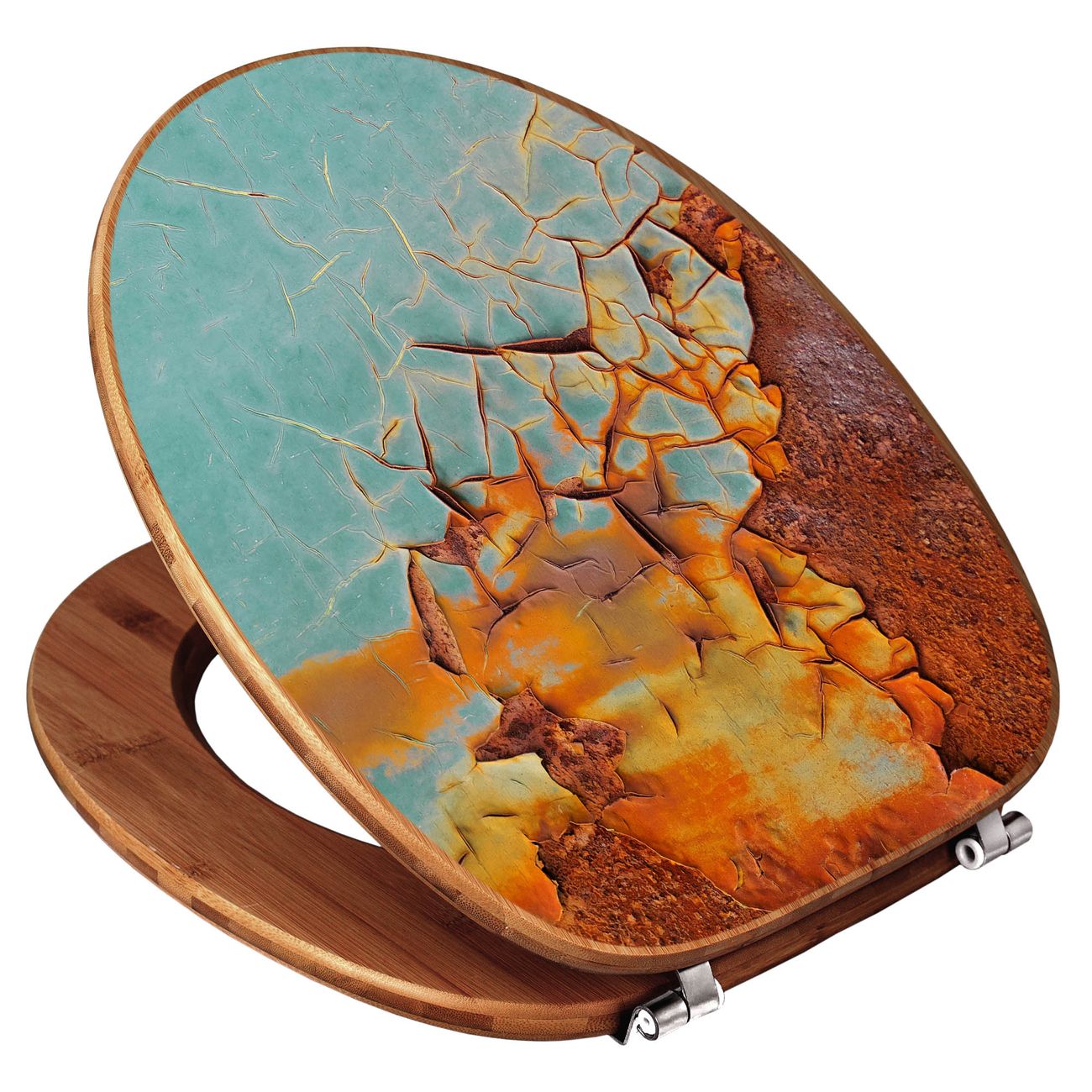 Design WC-Sitz Bambus Holz Motiv Rost und Blau