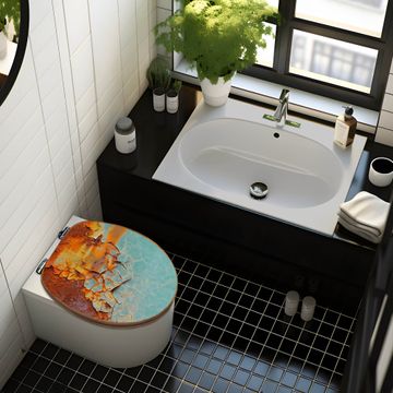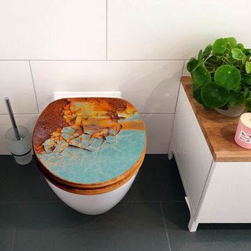 Mit dem banjado Toilettensitz in Bambus verbinden Sie Design und Funktionalität. Sie erhalten den WC-Sitz mit bewährt schwerer Holz Qualität und Universal Scharnieren. Das Motiv Motiv Rost und Blau besteht aus einer schutzlaminierten Motivfolie, die durch das Schutzlaminat zusätzlich vor Kratzern schützt. Durch diesen Motivdruck wird der WC-Sitz zu einem Blickfang in Ihrem Bad.
