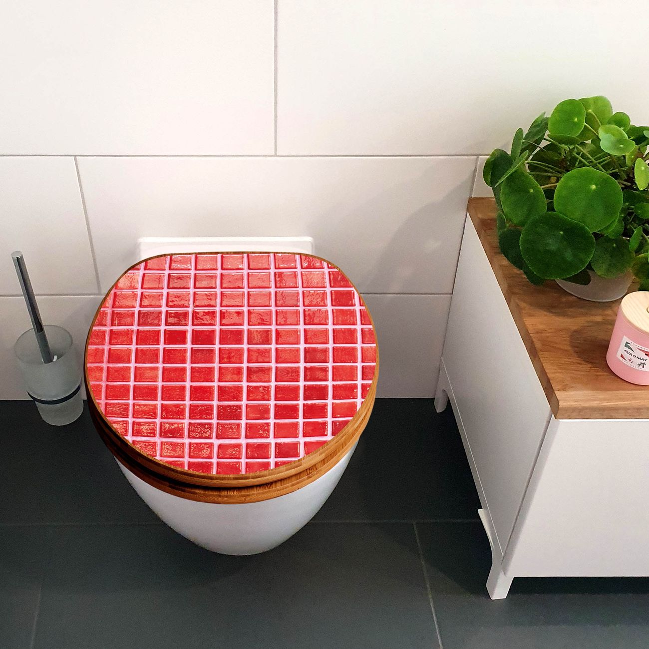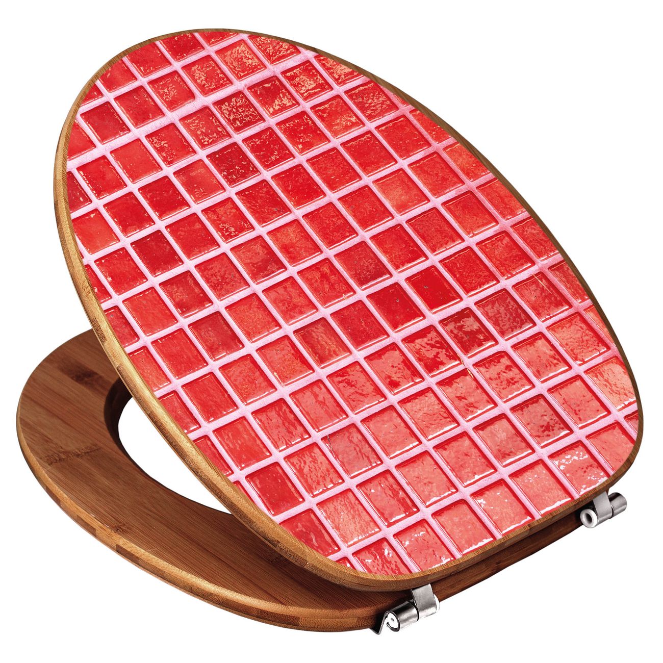 Design WC-Sitz Bambus Holz Motiv Rote Kacheln