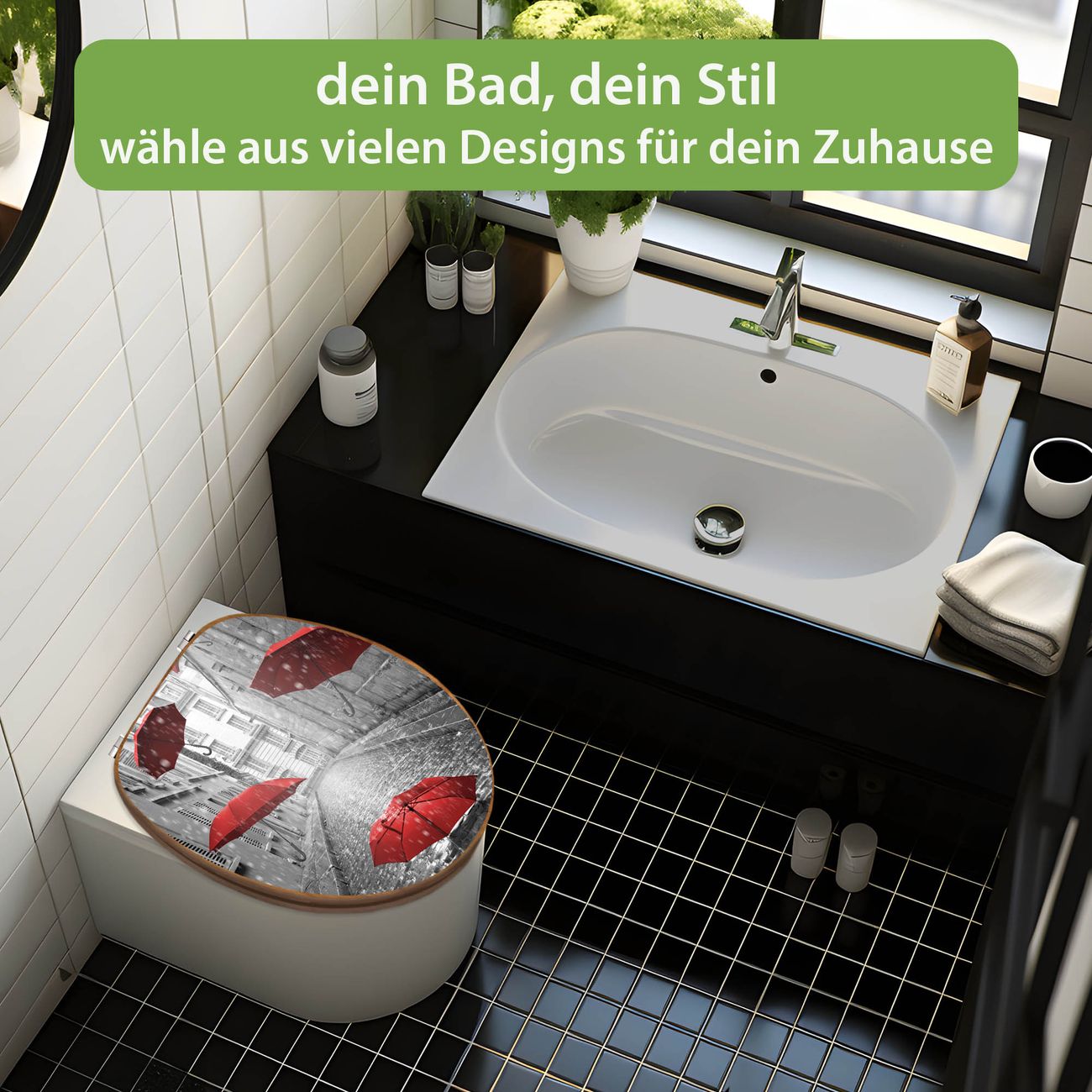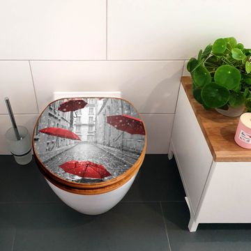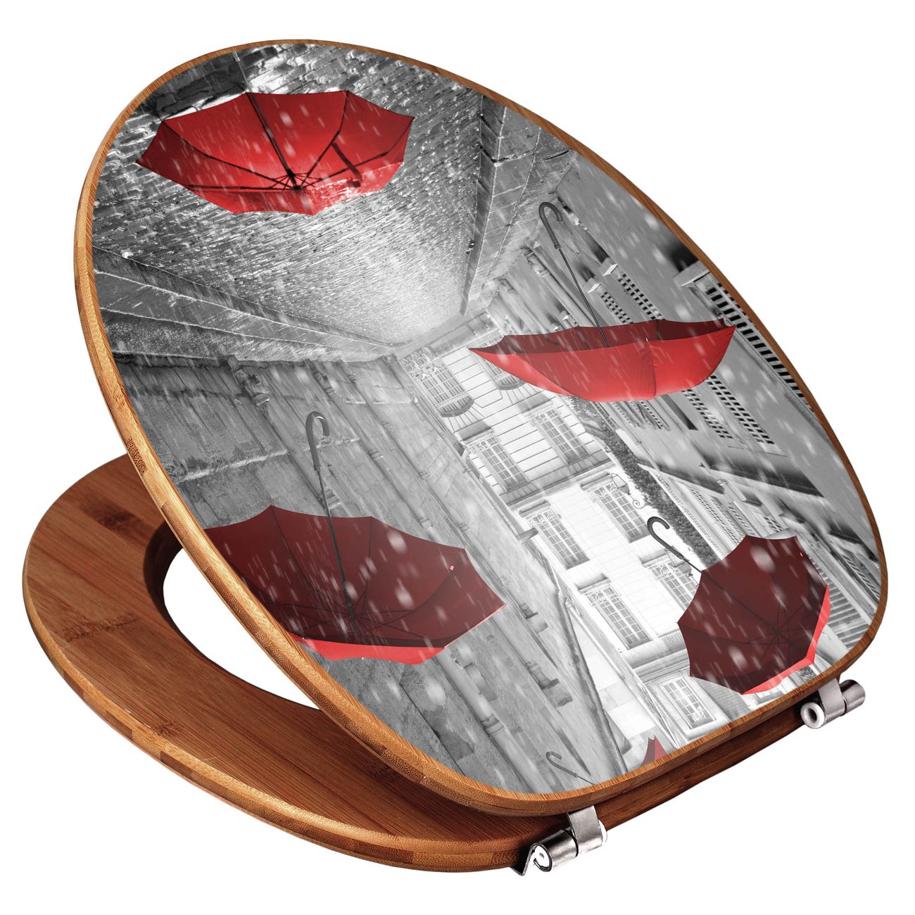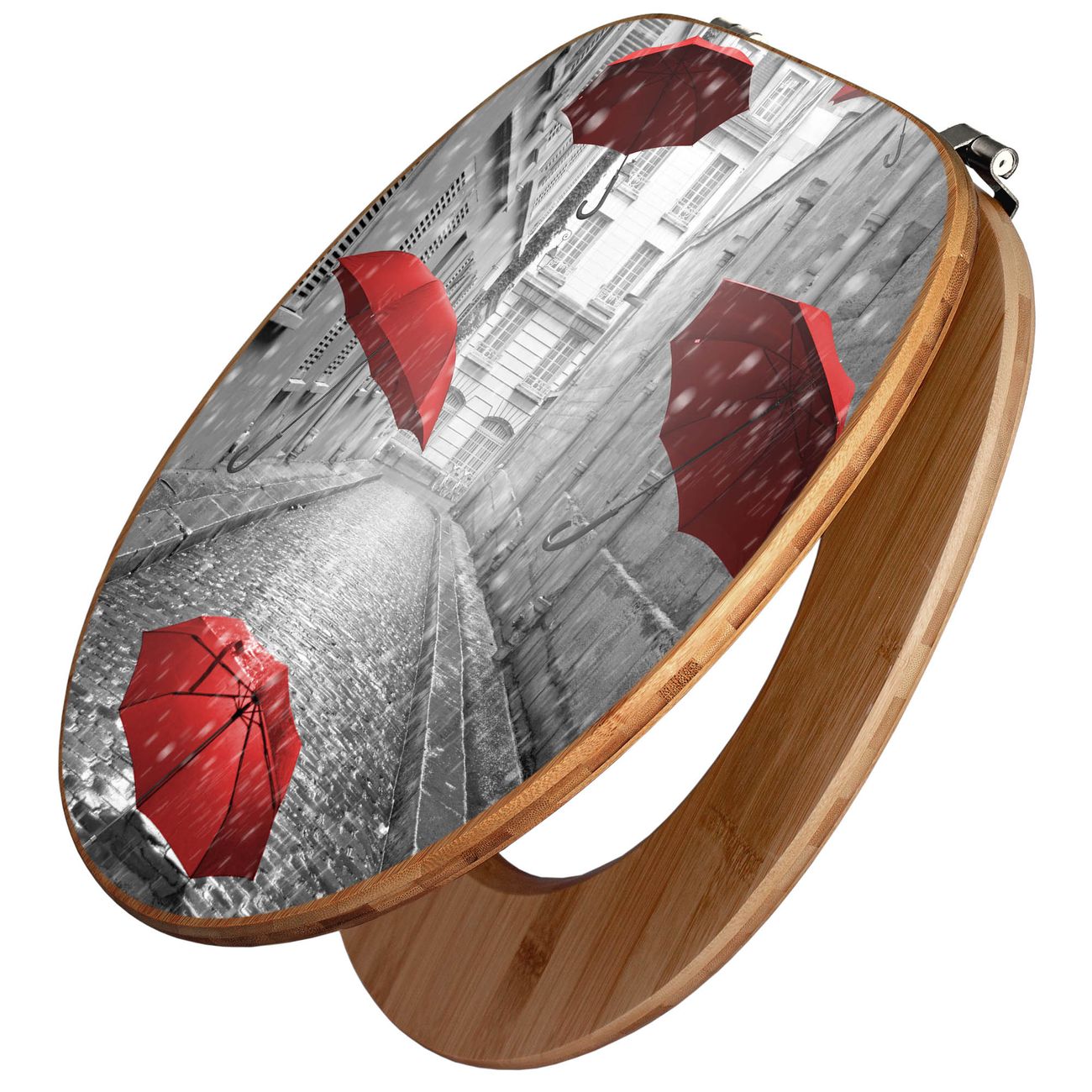 Design WC-Sitz Bambus Holz Motiv Rote Schirme