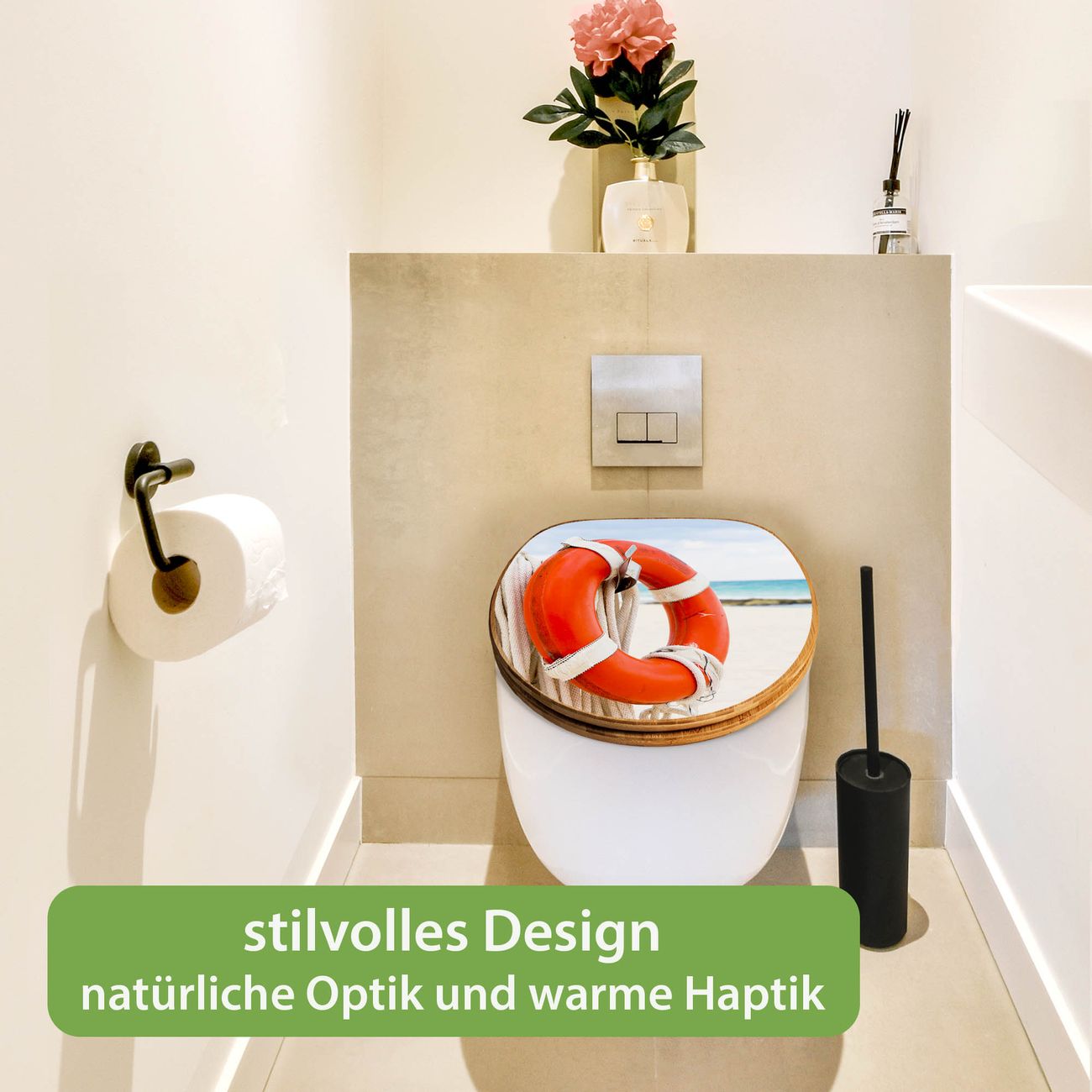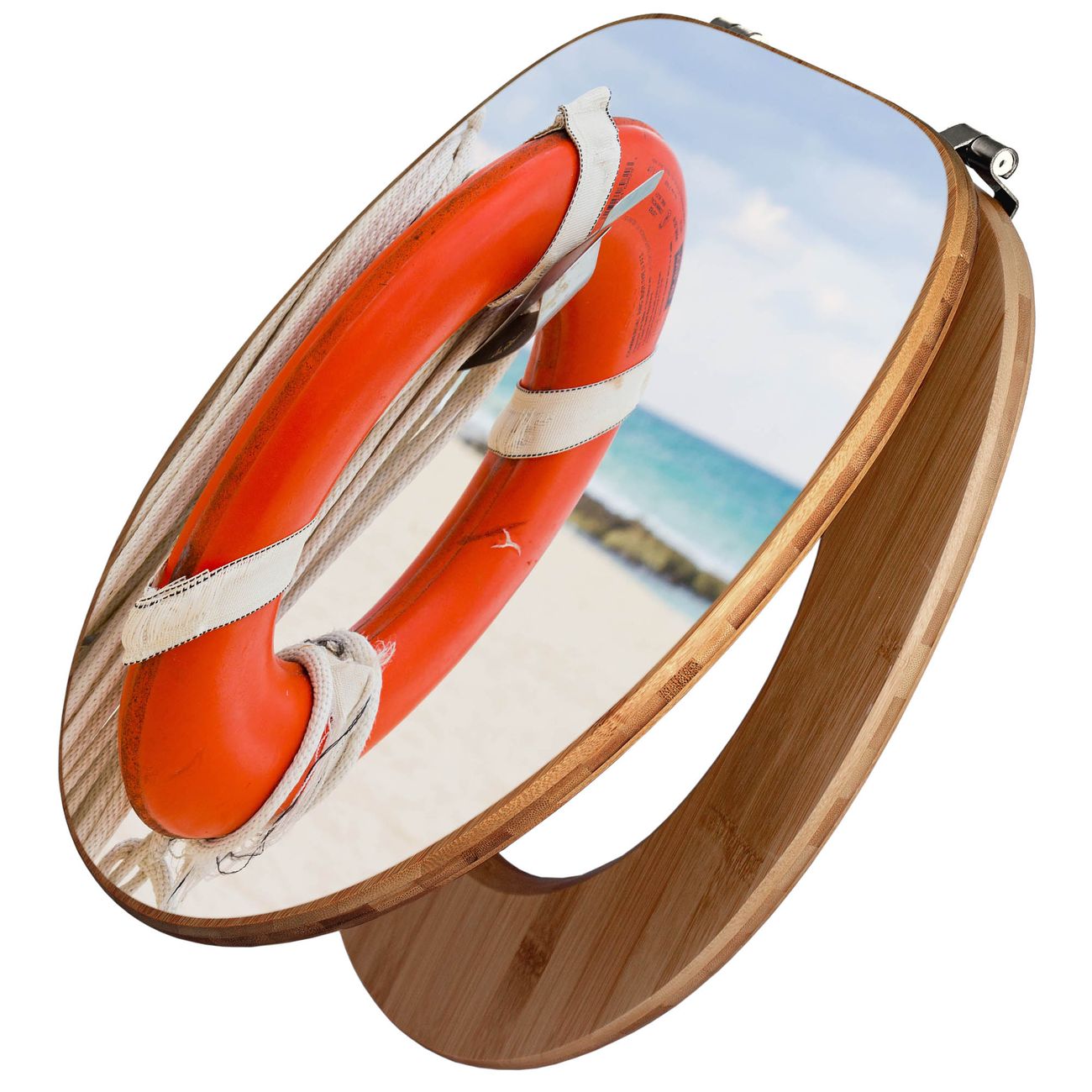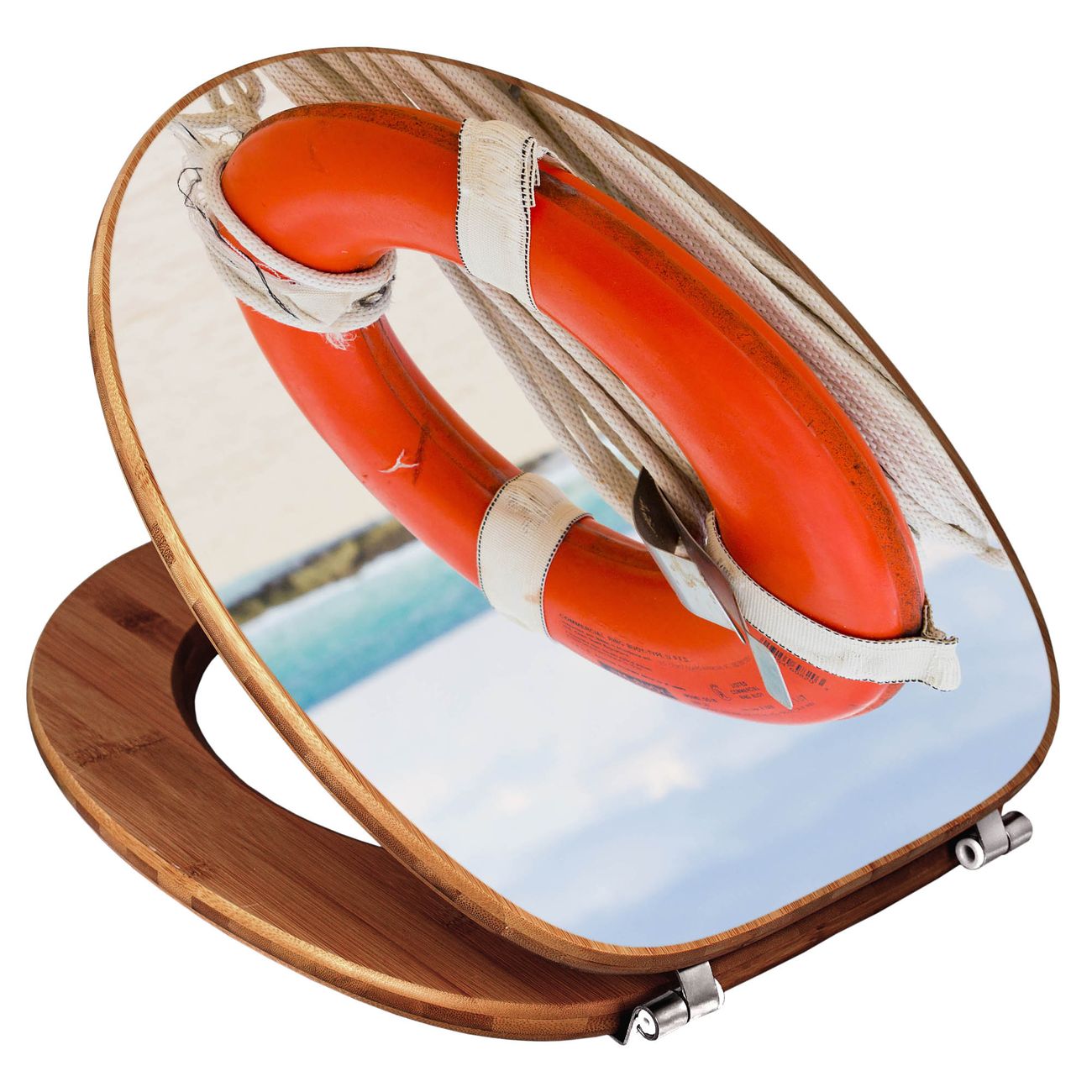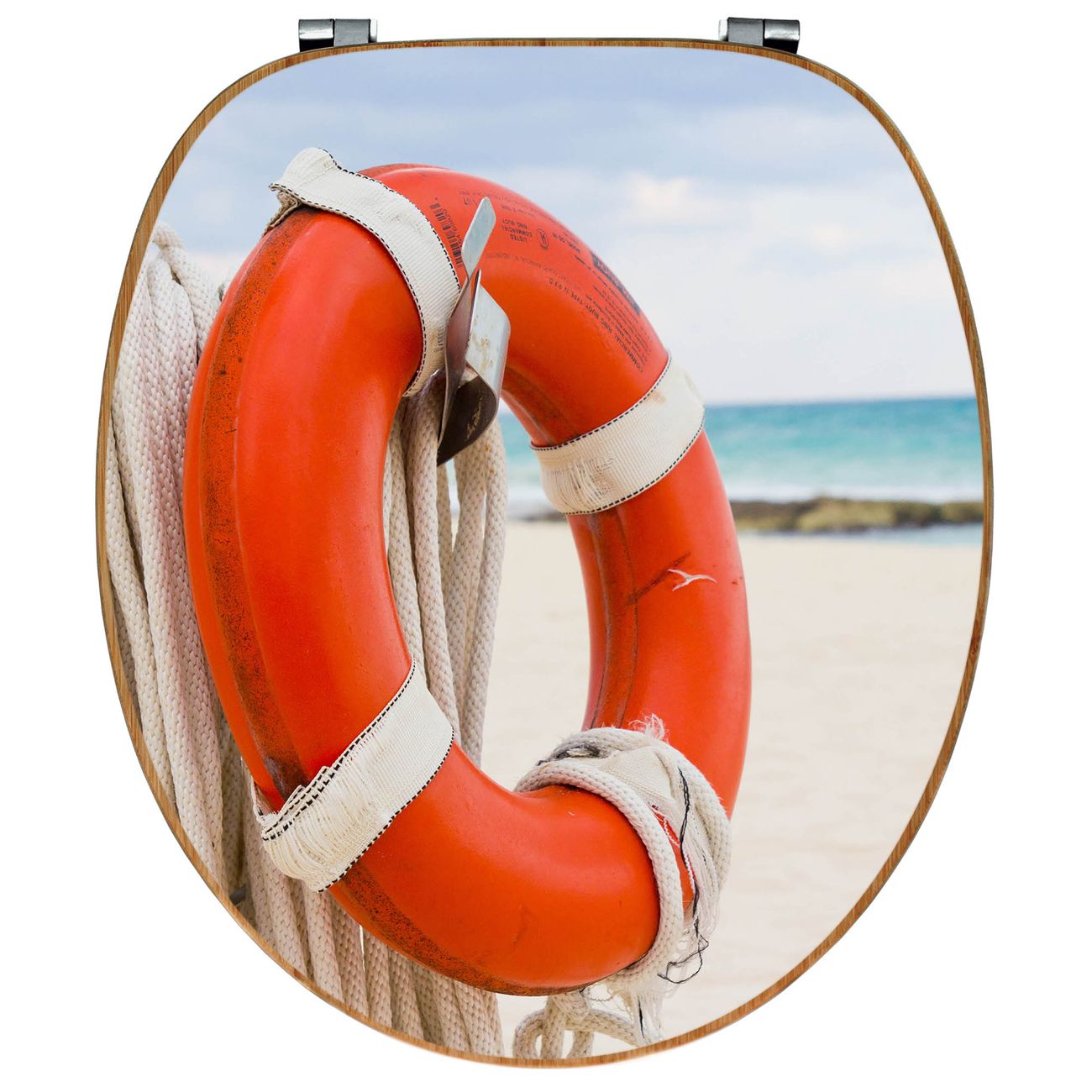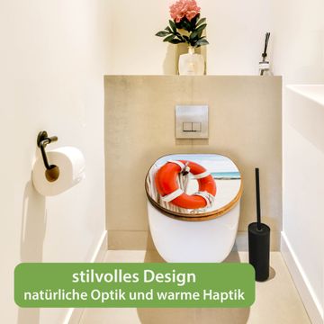 Design WC-Sitz Bambus Holz Motiv Roter Rettungsring