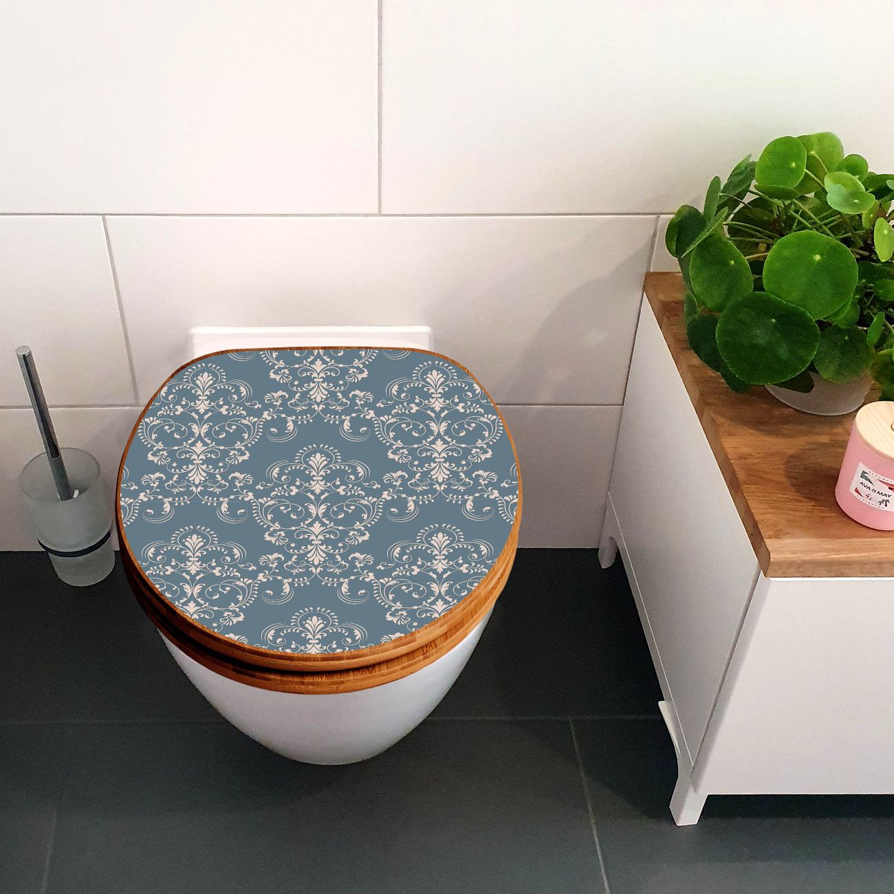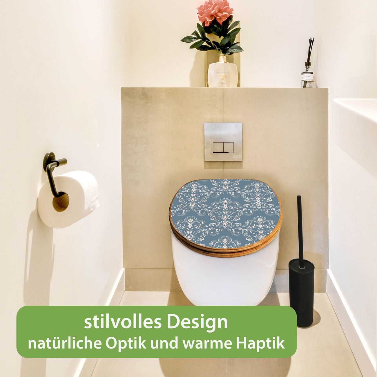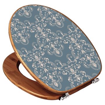 Design WC-Sitz Bambus Holz Motiv Royal Creme Blau