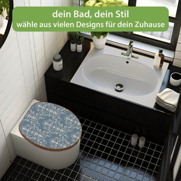 Mit dem banjado Toilettensitz in Bambus verbinden Sie Design und Funktionalität. Sie erhalten den WC-Sitz mit bewährt schwerer Holz Qualität und Universal Scharnieren. Das Motiv Motiv Royal Creme Blau besteht aus einer schutzlaminierten Motivfolie, die durch das Schutzlaminat zusätzlich vor Kratzern schützt. Durch diesen Motivdruck wird der WC-Sitz zu einem Blickfang in Ihrem Bad.