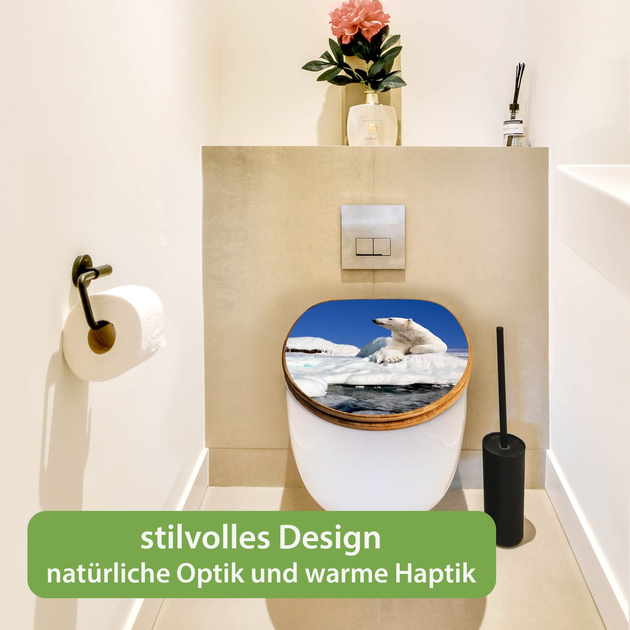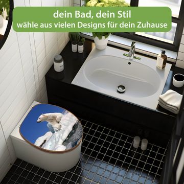 Mit dem banjado Toilettensitz in Bambus verbinden Sie Design und Funktionalität. Sie erhalten den WC-Sitz mit bewährt schwerer Holz Qualität und Universal Scharnieren. Das Motiv Motiv Ruhender Eisbär besteht aus einer schutzlaminierten Motivfolie, die durch das Schutzlaminat zusätzlich vor Kratzern schützt. Durch diesen Motivdruck wird der WC-Sitz zu einem Blickfang in Ihrem Bad.