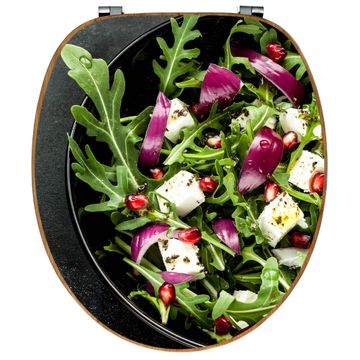 Mit dem banjado Toilettensitz in Bambus verbinden Sie Design und Funktionalität. Sie erhalten den WC-Sitz mit bewährt schwerer Holz Qualität und Universal Scharnieren. Das Motiv Motiv Salat besteht aus einer schutzlaminierten Motivfolie, die durch das Schutzlaminat zusätzlich vor Kratzern schützt. Durch diesen Motivdruck wird der WC-Sitz zu einem Blickfang in Ihrem Bad.
