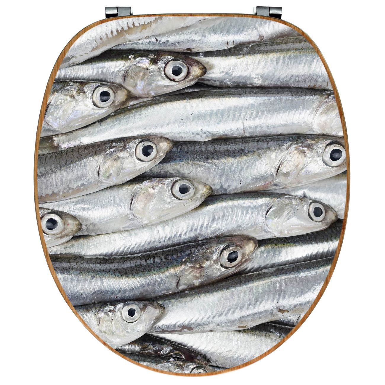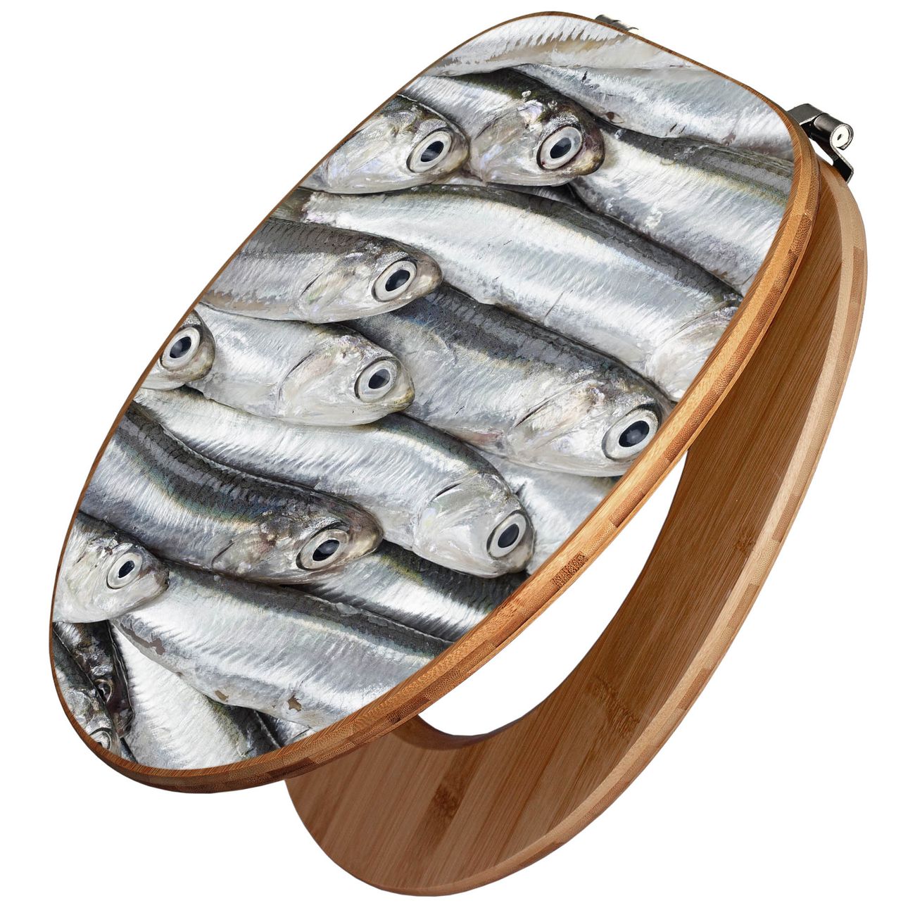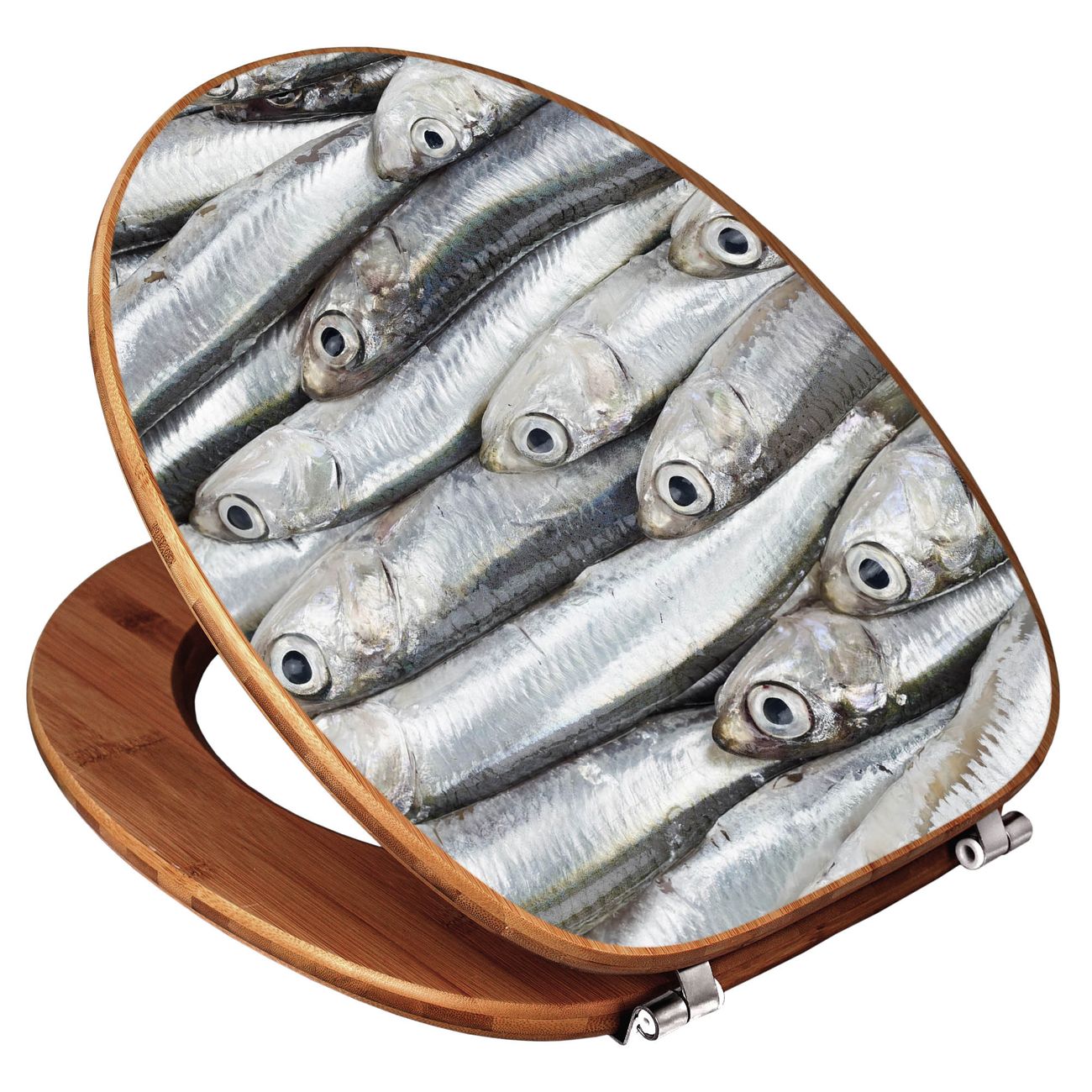 Design WC-Sitz Bambus Holz Motiv Sardinen