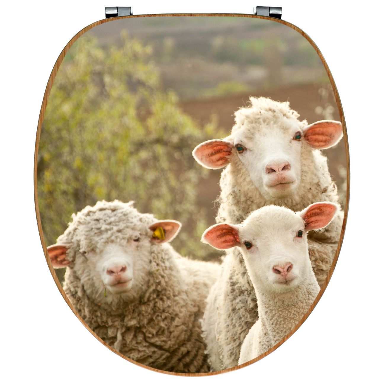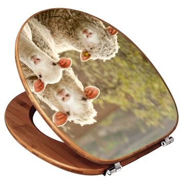 Mit dem banjado Toilettensitz in Bambus verbinden Sie Design und Funktionalität. Sie erhalten den WC-Sitz mit bewährt schwerer Holz Qualität und Universal Scharnieren. Das Motiv Motiv Schaffamilie besteht aus einer schutzlaminierten Motivfolie, die durch das Schutzlaminat zusätzlich vor Kratzern schützt. Durch diesen Motivdruck wird der WC-Sitz zu einem Blickfang in Ihrem Bad.