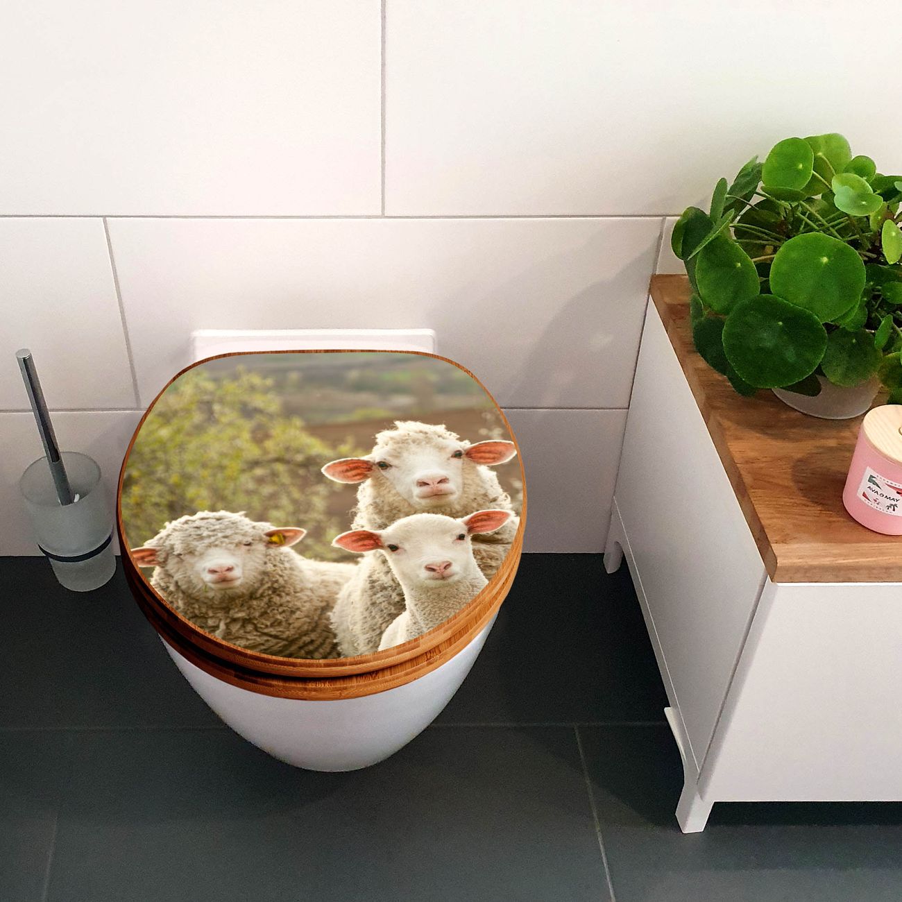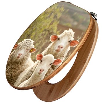 Design WC-Sitz Bambus Holz Motiv Schaffamilie