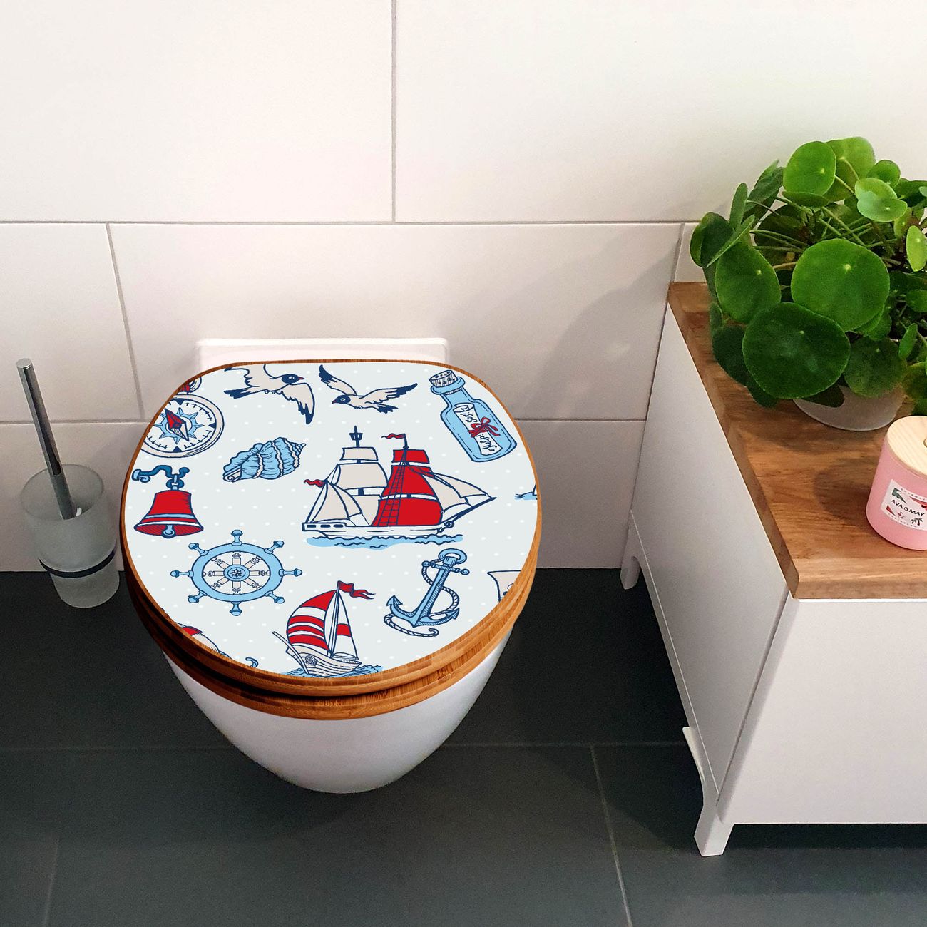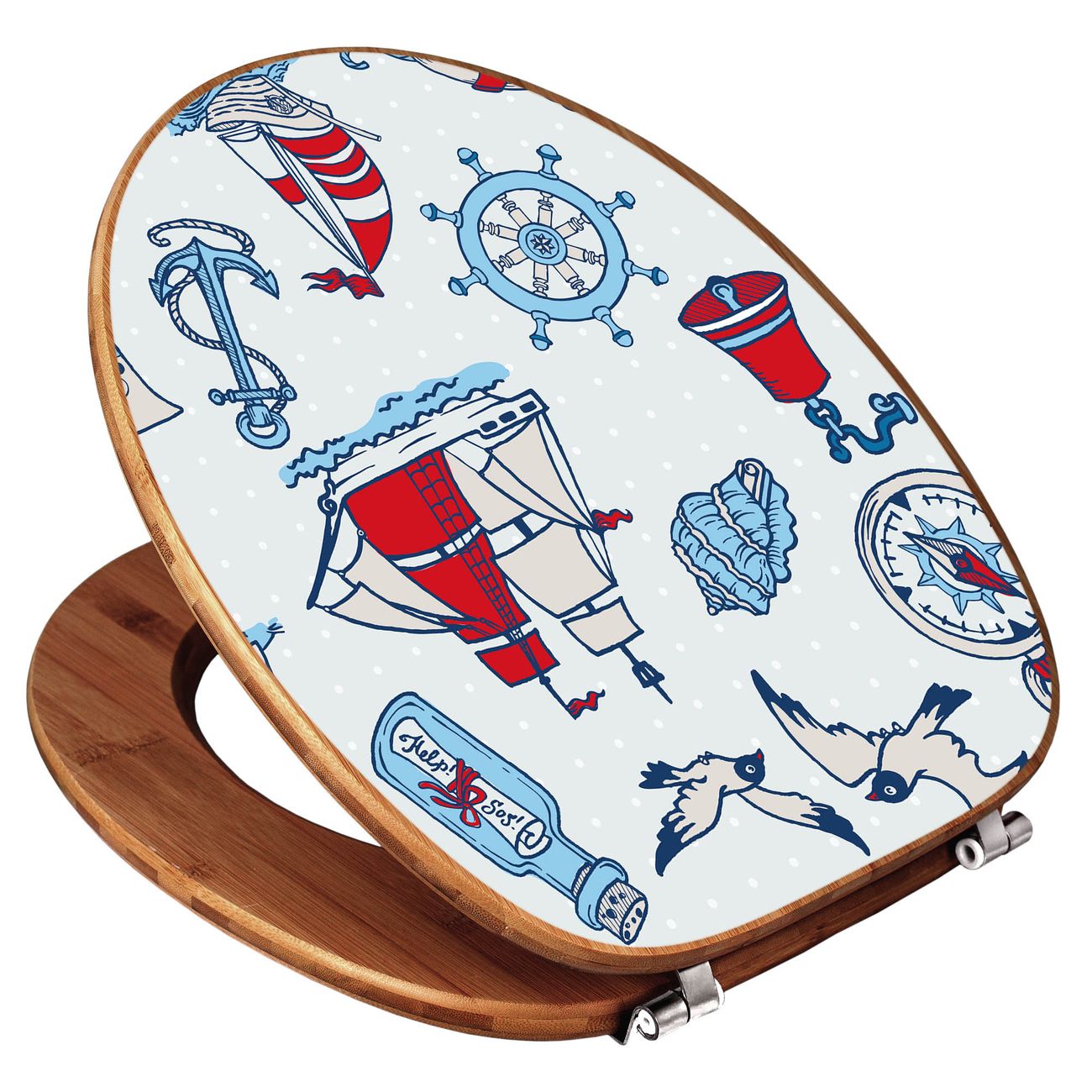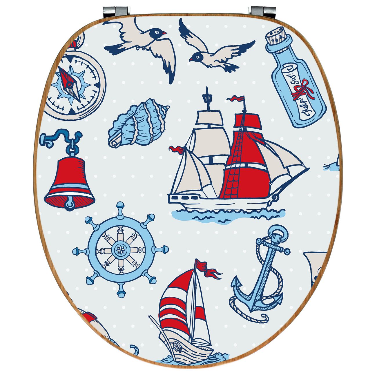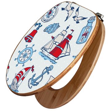 Design WC-Sitz Bambus Holz Motiv Schiff Ahoj