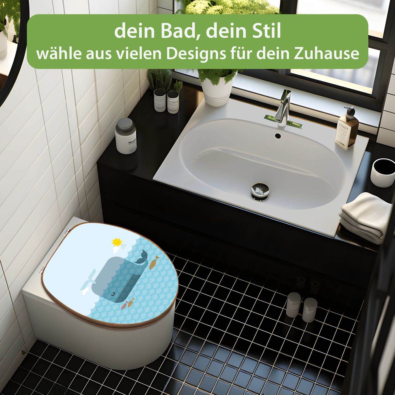 Mit dem banjado Toilettensitz in Bambus verbinden Sie Design und Funktionalität. Sie erhalten den WC-Sitz mit bewährt schwerer Holz Qualität und Universal Scharnieren. Das Motiv Motiv Schlafender Wal besteht aus einer schutzlaminierten Motivfolie, die durch das Schutzlaminat zusätzlich vor Kratzern schützt. Durch diesen Motivdruck wird der WC-Sitz zu einem Blickfang in Ihrem Bad.