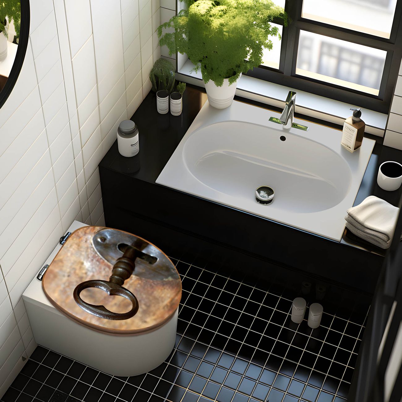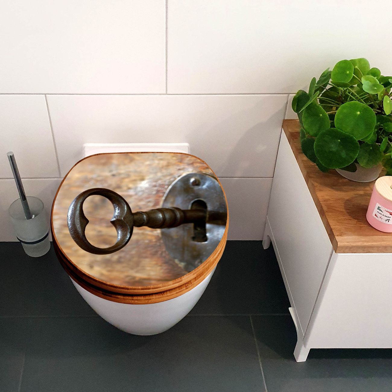 Design WC-Sitz Bambus Holz Motiv Schlüssel