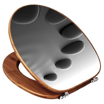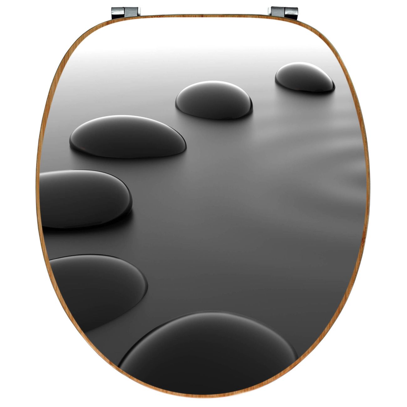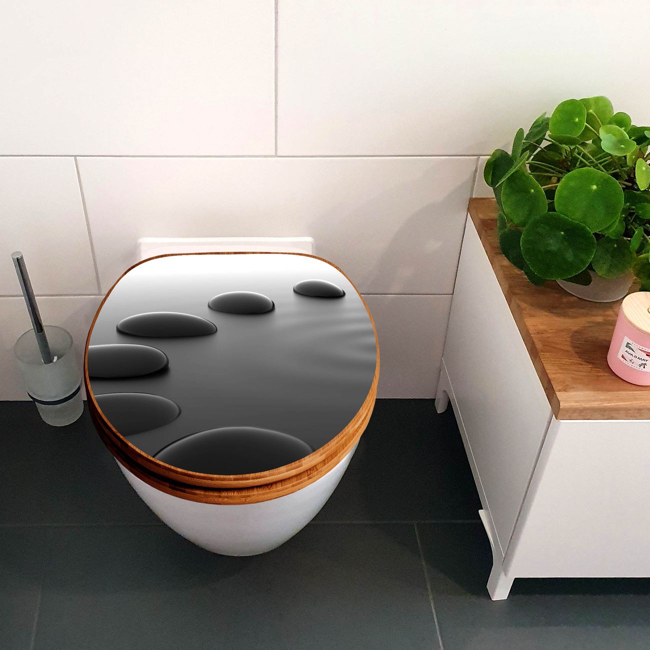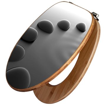 Design WC-Sitz Bambus Holz Motiv Schwarze Steine